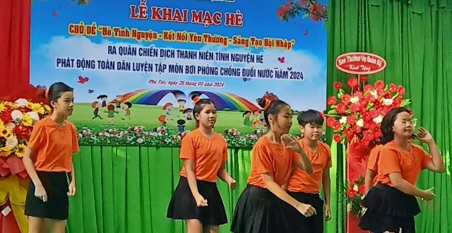 Các em học sinh biểu diễn tiết mục múa trong lễ khai mạc hè xã Phú Túc năm 2024