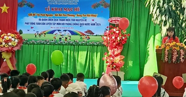 Phát biểu khai mạc bà Đặng Thị Hồng Trưởng ban chỉ đạo hè đề nghị các thành viên Ban chỉ đạo, các trường học và các ấp tổ chức nhiều hoạt động vui chơi, thể dục thể thao tạo sân chơi lành mạnh để thu hút các em thanh thiếu niên tham gia sinh hoạt, vui chơi trong dịp hè năm 2024.