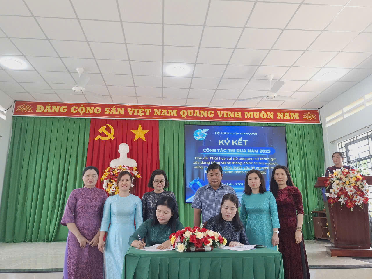 Sáng ngày 27/12/2024, Hội LHPN huyện Định Quán tổ chức Lễ ký kết giao ước thi đua năm 2025. Đến dự có đồng chí Bùi Thị Hạnh – PCT Hội LHPN tỉnh Đồng Nai; đồng chí Trần Hữu Hạnh – Phó Bí thư Thường trực, Chủ tịch HĐND huyện Định Quán; tham dự còn có các chị là Chủ tịch, Phó Chủ tịch, chi hội tưởng phụ nữ 15 đơn vị.