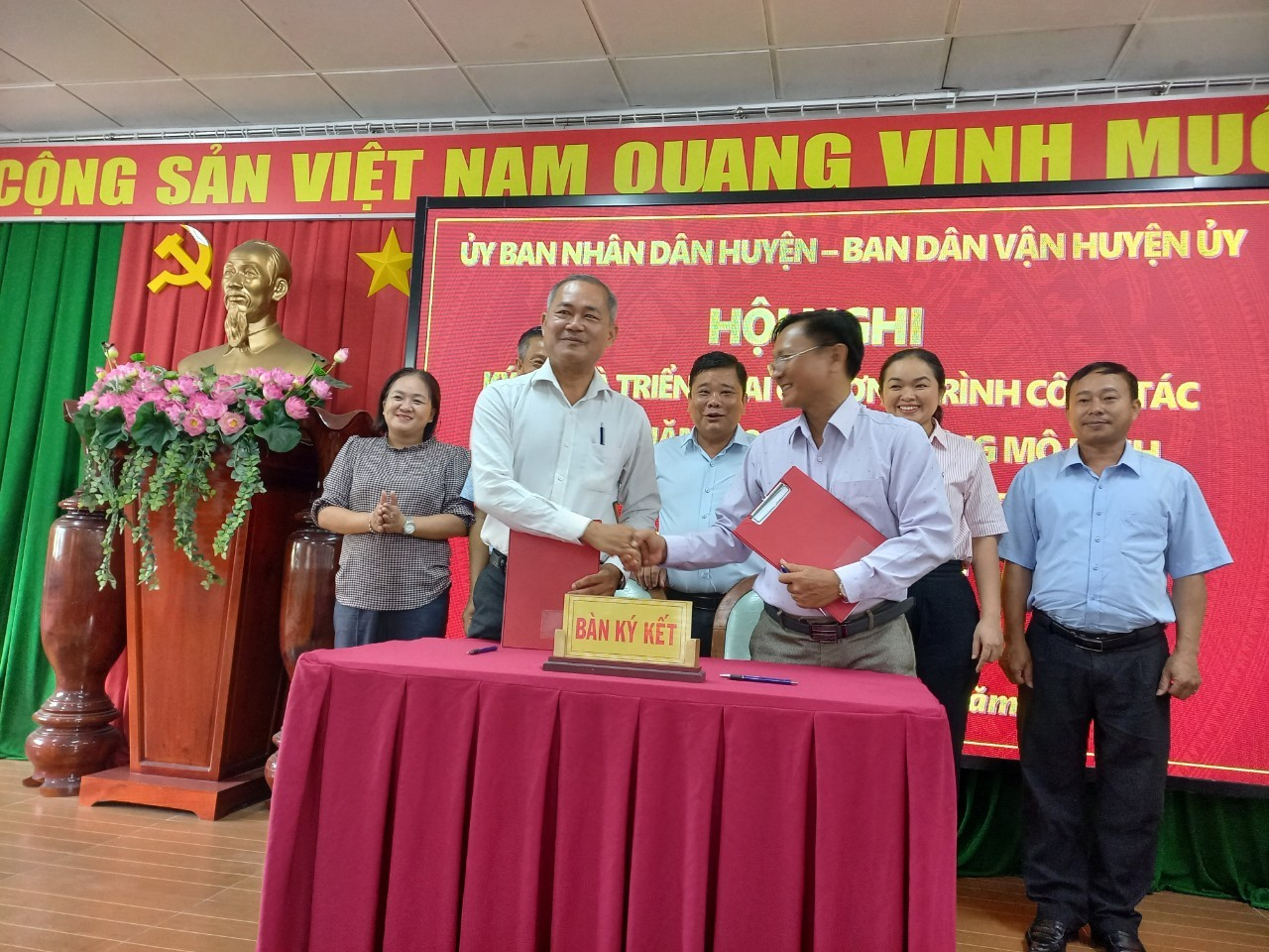 Các đồng chí Trần Nam Biên và Đỗ Thành Trung nêu rõ, việc phối hợp giữa hai bên nhằm làm tốt công tác lãnh đạo, chỉ đạo và tổ chức thực hiện các chủ trương, đường lối của Đảng, chính sách, pháp luật của Nhà nước liên quan đến công tác dân vận trên địa bàn huyện.