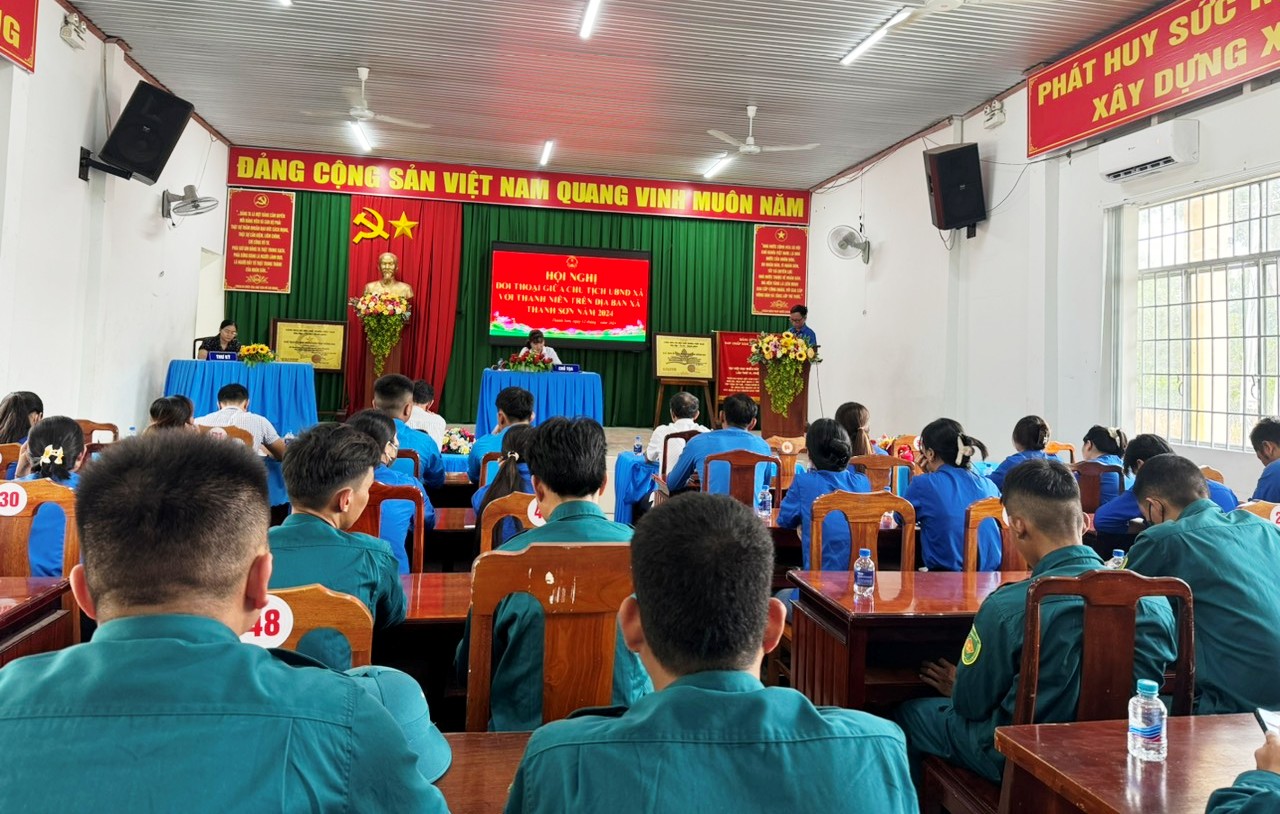 UBND xã Thanh Sơn vừa tổ chức hội nghị đối thoại giữa lãnh đạo UBND xã với thanh niên nhằm lắng nghe các ý kiến, tâm tư, nguyện vọng, giải pháp để nâng cao hiệu quả áp dụng công nghệ thông tin và chuyển đổi số trong học tập, làm việc và trong cuộc sống để các bạn đoàn viên thanh niên hướng đến xây dựng một thế hệ thanh niên xã nhà có tinh thần nhiệt huyết, phát huy sức trẻ, tinh thần sáng tạo.