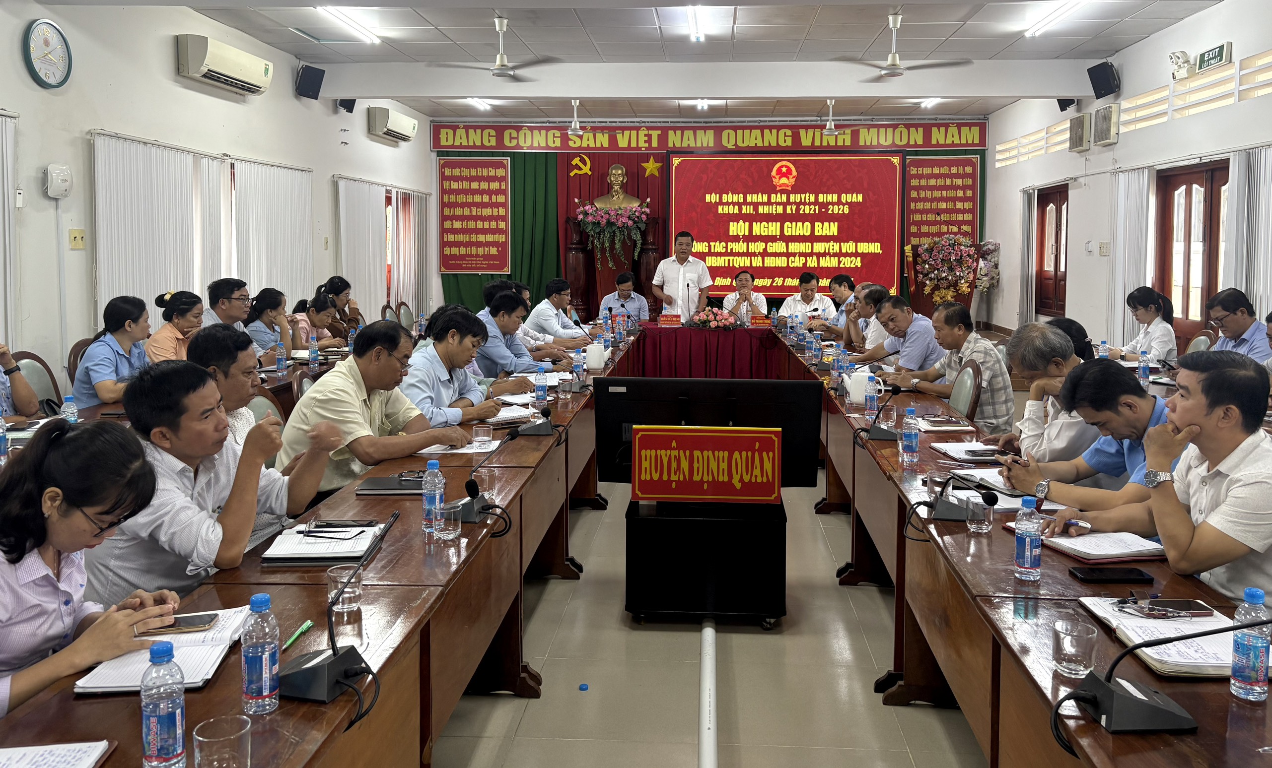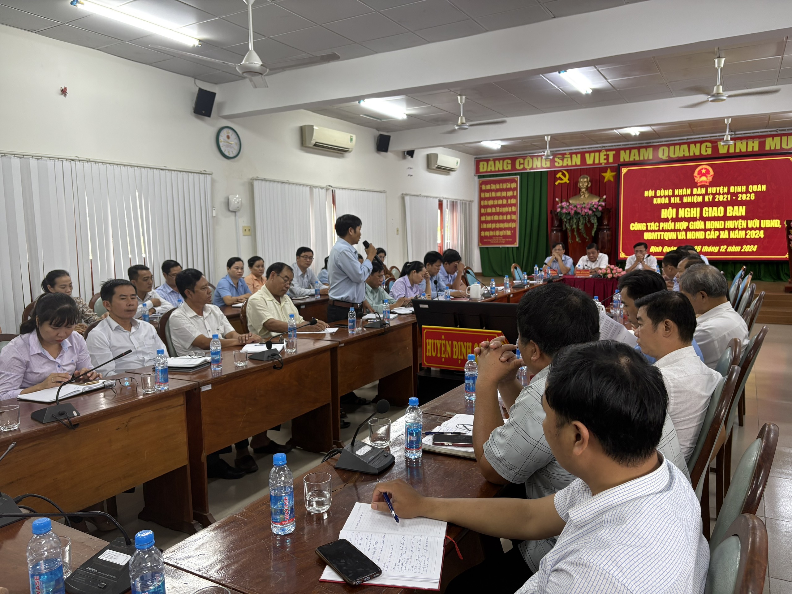 Chiều 26/12/2024, Thường trực HĐND huyện Định Quán tổ chức hội nghị đánh giá kết quả phối hợp giữa HĐND huyện với UBND, Uỷ ban MTTQ Việt Nam huyện và HĐND cấp xã năm 2024 và triển khai công tác phối hợp năm 2025.