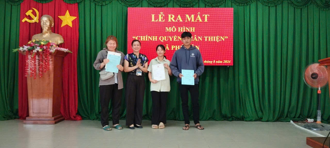 Tại lễ ra mắt, cán bộ và công chức xã ký cam kết giao ước thi đua xây dựng chính quyền thân thiện vì Nhân dân phục vụ; UBND xã Phú Tân trao “Thư chúc mừng” cho công dân đến nhận giấy chứng sinh chào đón thành viên mới và trao “Thư chúc mừng” cho công dân đến nhận “Giấy chứng nhận kết hôn”.
