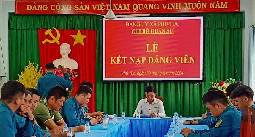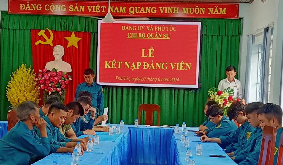 Chiều ngày 20/6/2024, Chi bộ Quân sự xã Phú Túc đã tổ chức lễ kết nạp đảng viên mới với quần chúng Bùi Đình Thế và quần chúng Hồ Đức Anh hiện đang là lực lượng dân quân thường trực Ban chỉ huy Quân sự xã Phú Túc.