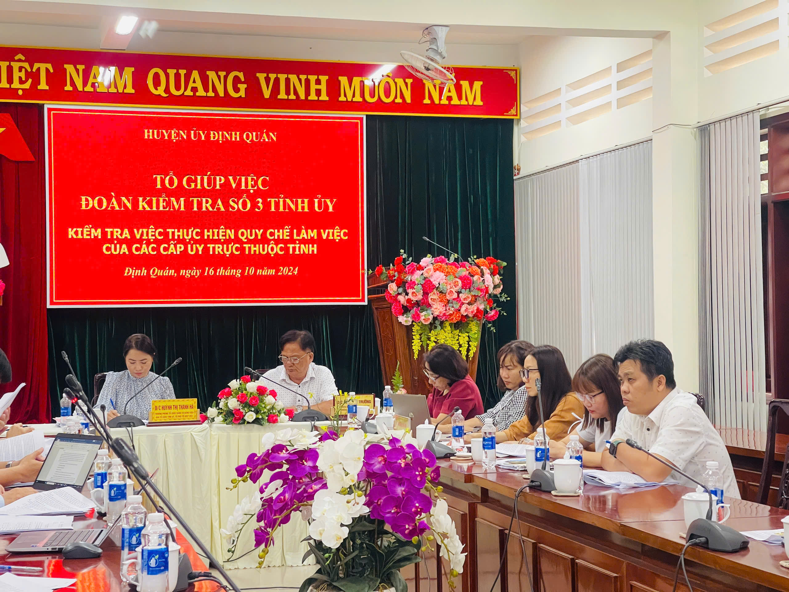 Tổ giúp việc Đoàn kiểm tra số 3 Tỉnh ủy làm việc với Huyện ủy Định Quán