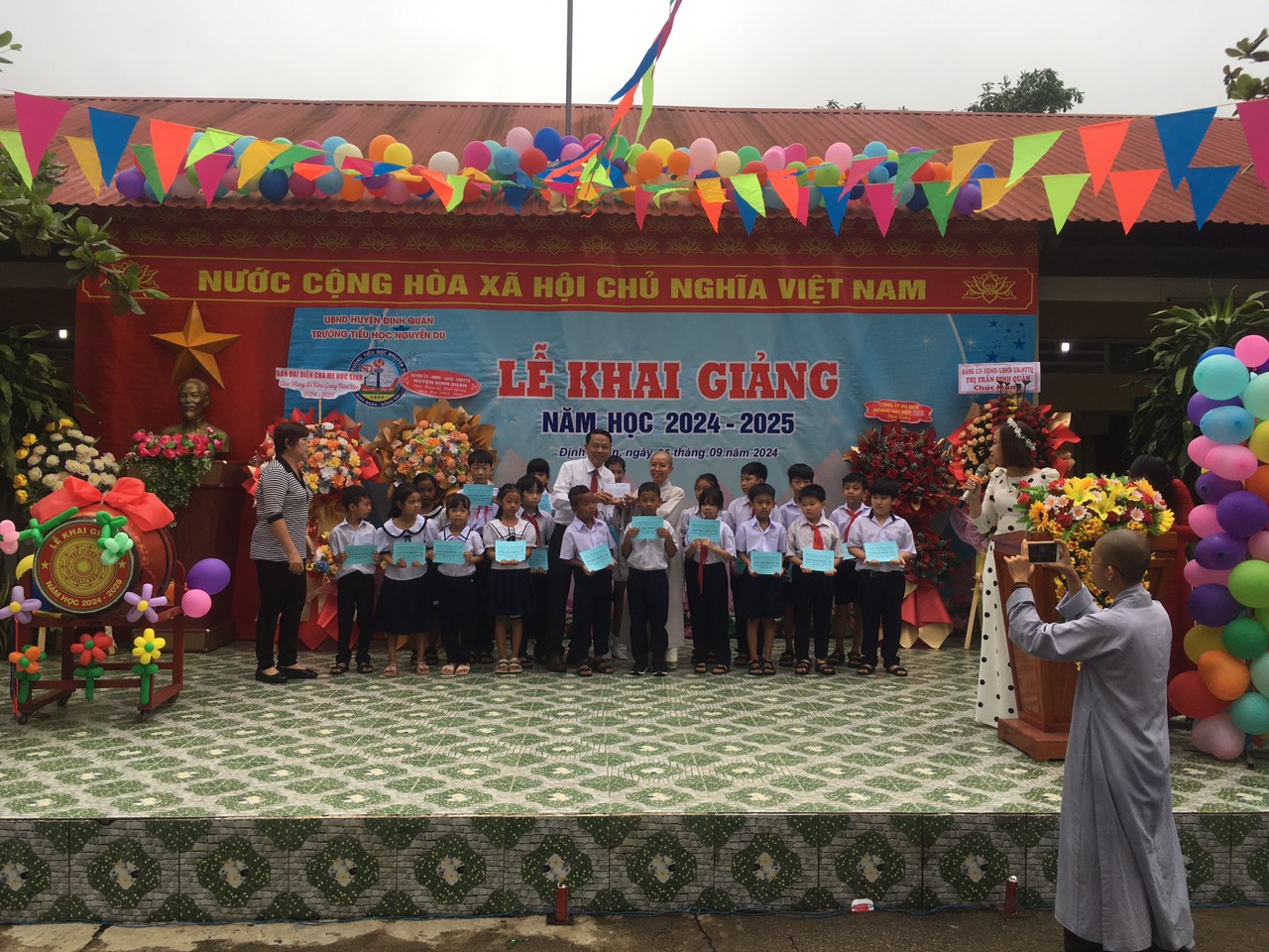 Tại buổi lễ khai giảng, Nhà trường đã trao tặng 25 suất bảo hiểm y tế trị giá trên 22 triệu đồng và 24 suất học bổng mỗi suất trị giá 500.000 đ/suất cho các em học sinh có hoàn cảnh khó khăn của nhà trường tổng giá trị quà trị giá trên 34 triệu đồng./.