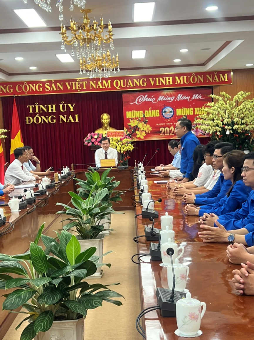 Thay mặt Đoàn Thanh thiếu nhi tiêu biểu, đồng chí Nguyễn Minh Kiên, Bí thư Tỉnh đoàn bày tỏ sự biết ơn đối với sự quan tâm lãnh đạo, chỉ đạo sâu sát của các đồng chí lãnh đạo tỉnh đối với công tác đoàn và phong trào thanh thiếu nhi. Đồng chí báo cáo những thành tích mà các cấp bộ đoàn, đoàn viên, thanh thiếu nhi trên địa bàn tỉnh đã đạt được trong thời gian qua; thay mặt thế hệ trẻ tỉnh Đồng Nai, đồng chí Bí thư Tỉnh đoàn hứa sẽ luôn cố gắng, nỗ lực hết mình lao động, học tập, rèn luyện trên các lĩnh vực để đóng góp vào sự phát triển của tỉnh. Đồng thời, kính chúc đồng chí Bí thư Tỉnh ủy, đồng chí Phó Bí thư Tỉnh ủy, các đồng chí Lãnh đạo các ban đảng, Văn phòng Tỉnh ủy và gia đình đón một năm mới như ý, hạnh phúc và thành công.