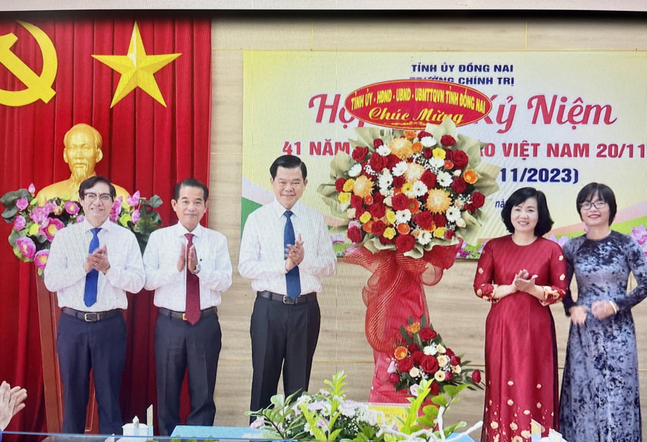 Sáng ngày 20/11/2023, đồng chí Nguyễn Hồng Lĩnh, Ủy viên Ban Chấp hành Trung ương Đảng, Bí thư Tỉnh ủy tham dự kỷ niệm 41 năm Ngày Nhà giáo Việt Nam (20/11/1982 - 20/11/2023) tại Trường Chính trị tỉnh; cùng dự có đồng chí Thái Bảo, TVTU, Chủ tịch Hội đồng nhân dân tỉnh; đồng chí Đào Văn Phước, TVTU, Trưởng Ban Tổ chức Tỉnh ủy; đồng chí Đặng Minh Nguyệt, TVTU, Bí thư Thành ủy Long Khánh; đồng chí Nguyễn Sơn Hùng, TUV, Phó Chủ tịch Ủy ban nhân dân tỉnh; đồng chí Viên Hồng Tiến, TUV, Chánh Văn phòng Tỉnh ủy; cùng đại diện lãnh đạo các ban đảng Tỉnh ủy.