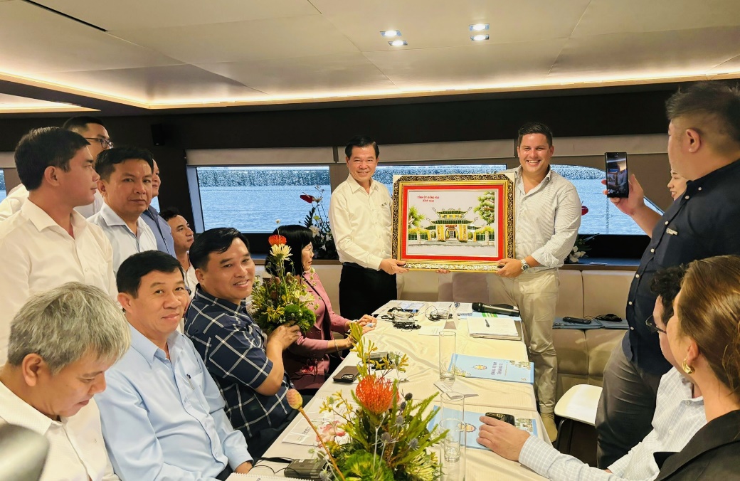Đồng chí Bí thư Tỉnh ủy tặng quà lưu niệm cho Đoàn công tác Australia