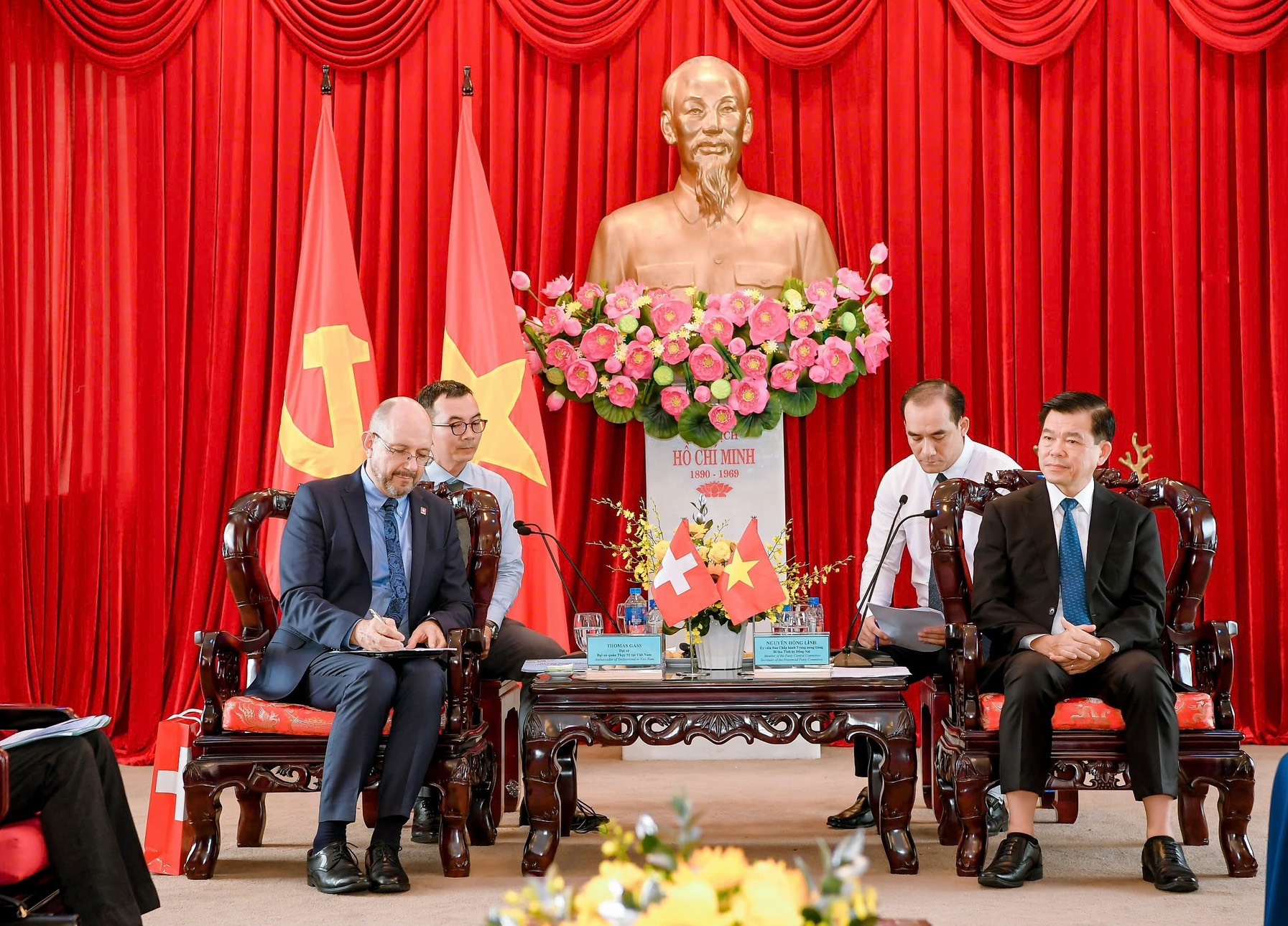 Ngày 01/8/2024, đồng chí Nguyễn Hồng Lĩnh, UVTW Đảng, Bí thư Tỉnh ủy Đồng Nai cùng đồng chí Nguyễn Thị Hoàng, TUV, Phó Chủ tịch UBND tỉnh đã chủ trì đón tiếp Ông Thomas Gass- Đại sứ Thụy Sĩ tại Việt Nam và Ông Werner Bardill - Tổng Lãnh sự quán Thụy Sĩ tại Thành phố Hồ Chí Minh. Cùng tham dự về phía tỉnh Đồng Nai còn có sự tham dự của các đồng chí Chánh Văn phòng Tỉnh ủy, lãnh đạo các Sở: Kế hoạch và Đầu tư, Công Thương, Xây dựng, Công an tỉnh, Ngoại vụ, Ban Quản lý Khu công nghiệp tỉnh. Tham dự cùng đoàn Đại sứ Thụy Sĩ còn có Đại diện lãnh đạo Công ty TNHH Nestlé Việt Nam.