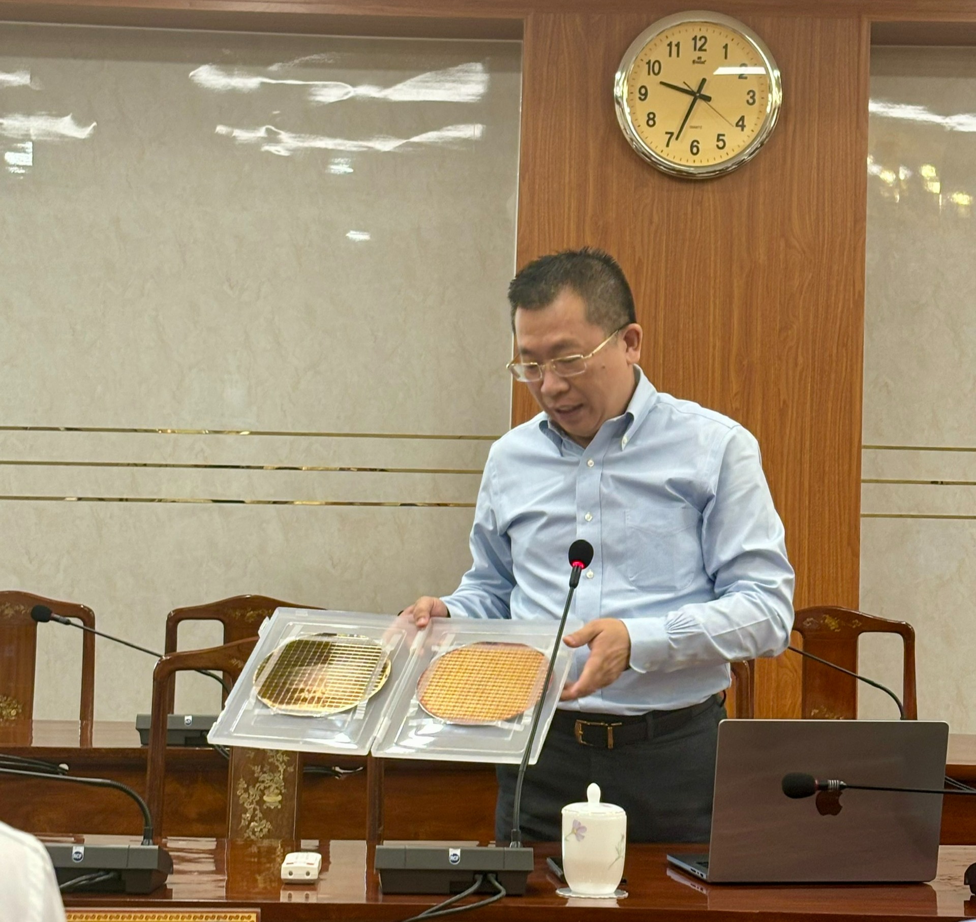 Đại diện Công ty CP Quốc tế Quang Điện trình bày về một sản phẩm chip bán dẫn