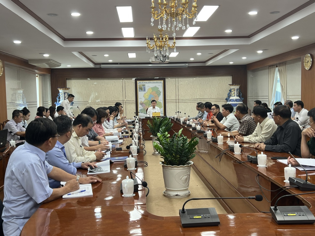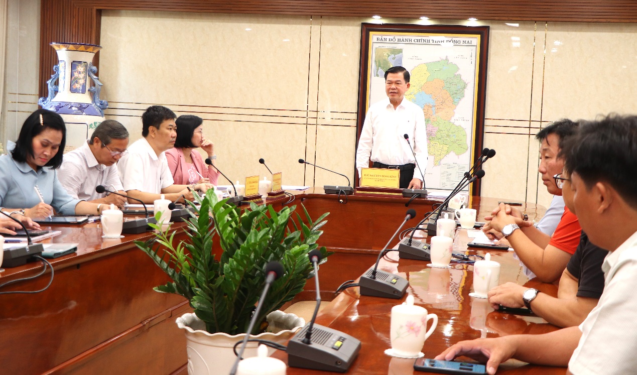 Ngày 31/7/2024, đồng chí Nguyễn Hồng Lĩnh, Ủy viên Ban Chấp hành Trung ương Đảng, Bí thư Tỉnh ủy tiếp và làm việc với Công ty cổ phần Xuất nhập khẩu Thương mại - Dịch vụ SG Chiến Thắng; cùng dự làm việc có các đồng chí: Đặng Minh Nguyệt, Ủy viên Ban Thường vụ Tỉnh ủy, Bí thư Thành ủy Long Khánh; Nguyễn Thị Hoàng, Tỉnh ủy viên, Phó Chủ tịch Ủy ban nhân dân tỉnh; lãnh đạo Văn phòng Tỉnh ủy, Văn phòng Ủy ban nhân dân tỉnh; các sở, ngành: Kế hoạch và Đầu tư; Xây dựng; Văn hóa, Thể thao và Du lịch; Tài nguyên và Môi trường; Công an tỉnh; Bộ Chỉ huy Quân sự tỉnh; Bí thư và Chủ tịch Ủy ban nhân dân các huyện, thành phố: Biên Hòa, Long Khánh, Vĩnh Cửu, Thống Nhất, Định Quán, Xuân Lộc.