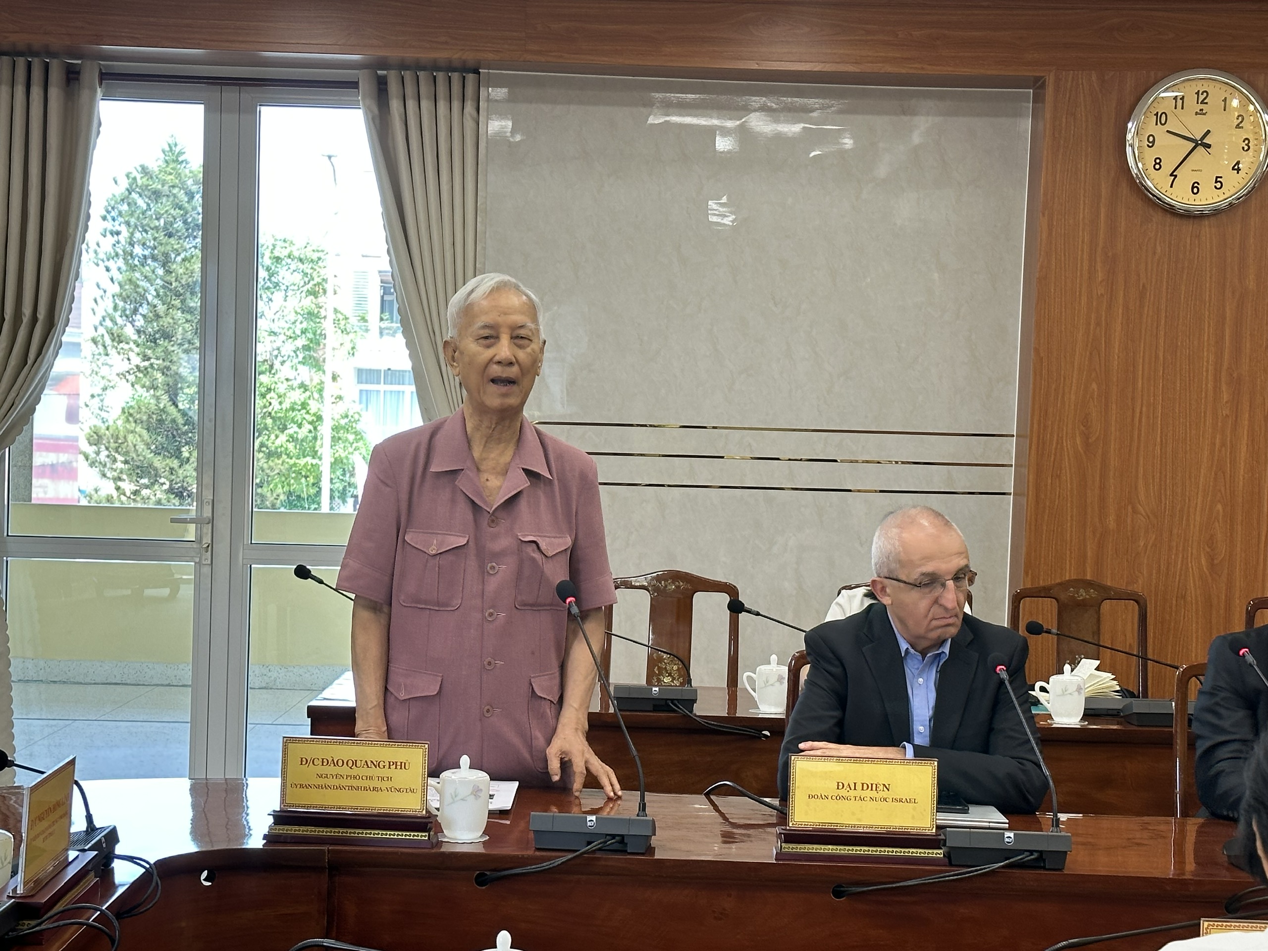 Đồng chí Đào Quang Phủ, Nguyên Phó Chủ tịch Ủy ban nhân dân tỉnh Bà Rịa - Vũng Tàu, đại diện Đoàn công tác Israel phát biểu tại cuộc họp
