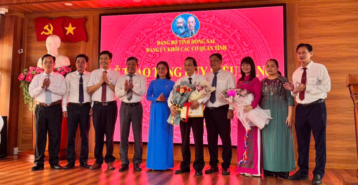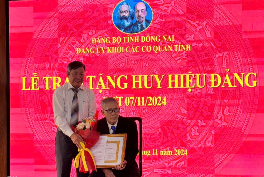 Chiều ngày 29/11/2024, tại hội trường Đảng ủy Khối các cơ quan tỉnh, đồng chí Hồ Thanh Sơn, Phó Bí thư Thường trực Tỉnh ủy đến dự Lễ trao Huy hiệu 65 năm tuổi Đảng cho đồng chí Nguyễn Trùng Phương, Nguyên UVTV, nguyên Phó Chủ tịch UBND tỉnh, hiện là Bí thư Đảng ủy, thành viên Hội đồng Trường Đại học Lạc Hồng và Huy hiệu 30 năm tuổi đảng cho đồng chí Bùi Quang Huy - TUV, Bí thư Khối các cơ quan tỉnh.
