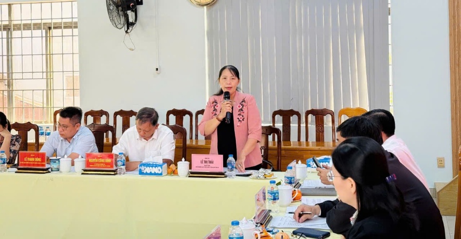 Đồng chí Lê Thị Thái, Tỉnh ủy viên, Phó Trưởng Ban Tuyên giáo và Dân vận Tỉnh ủy phát biểu tại Hội nghị