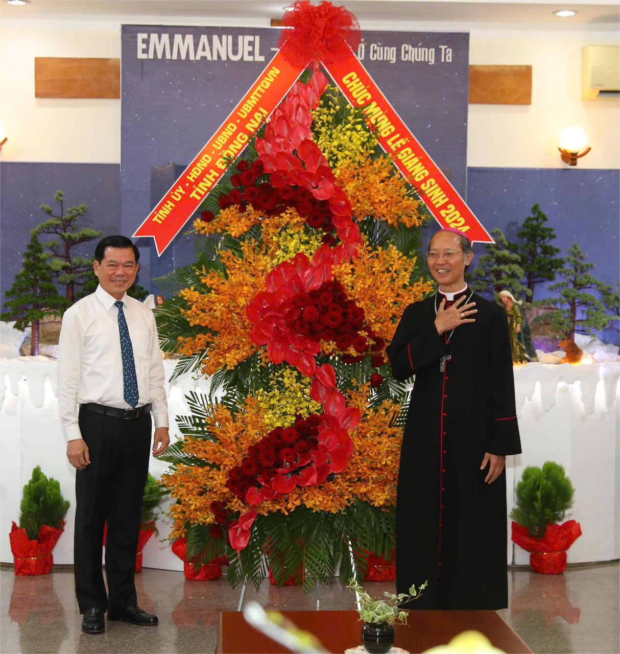 Chiều ngày 18/12/2024, đồng chí Nguyễn Hồng Lĩnh - UVTW Đảng, Bí thư Tỉnh ủy làm Trưởng đoàn công tác 04 bên (Tỉnh ủy - HĐND - UBND - Ủy ban MTTQ Việt Nam tỉnh) đã đến thăm, chúc mừng các tổ chức, chức sắc Công giáo nhân dịp Lễ Giáng sinh năm 2024. Tham dự đoàn công tác có các đồng chí: Cao Tiến Dũng - UVTV, Trưởng ban Ban Dân vận Tỉnh ủy; Cao Văn Quang - UVTV, Chủ tịch Ủy ban MTTQ Việt Nam tỉnh; Đại tá Nguyễn Hồng Phong - UVTV, Giám đốc Công an tỉnh; Đặng Minh Nguyệt - UVTV, Bí thư Thành ủy Long Khánh, cùng lãnh đạo các sở, ban, ngành và thành phố Long Khánh.