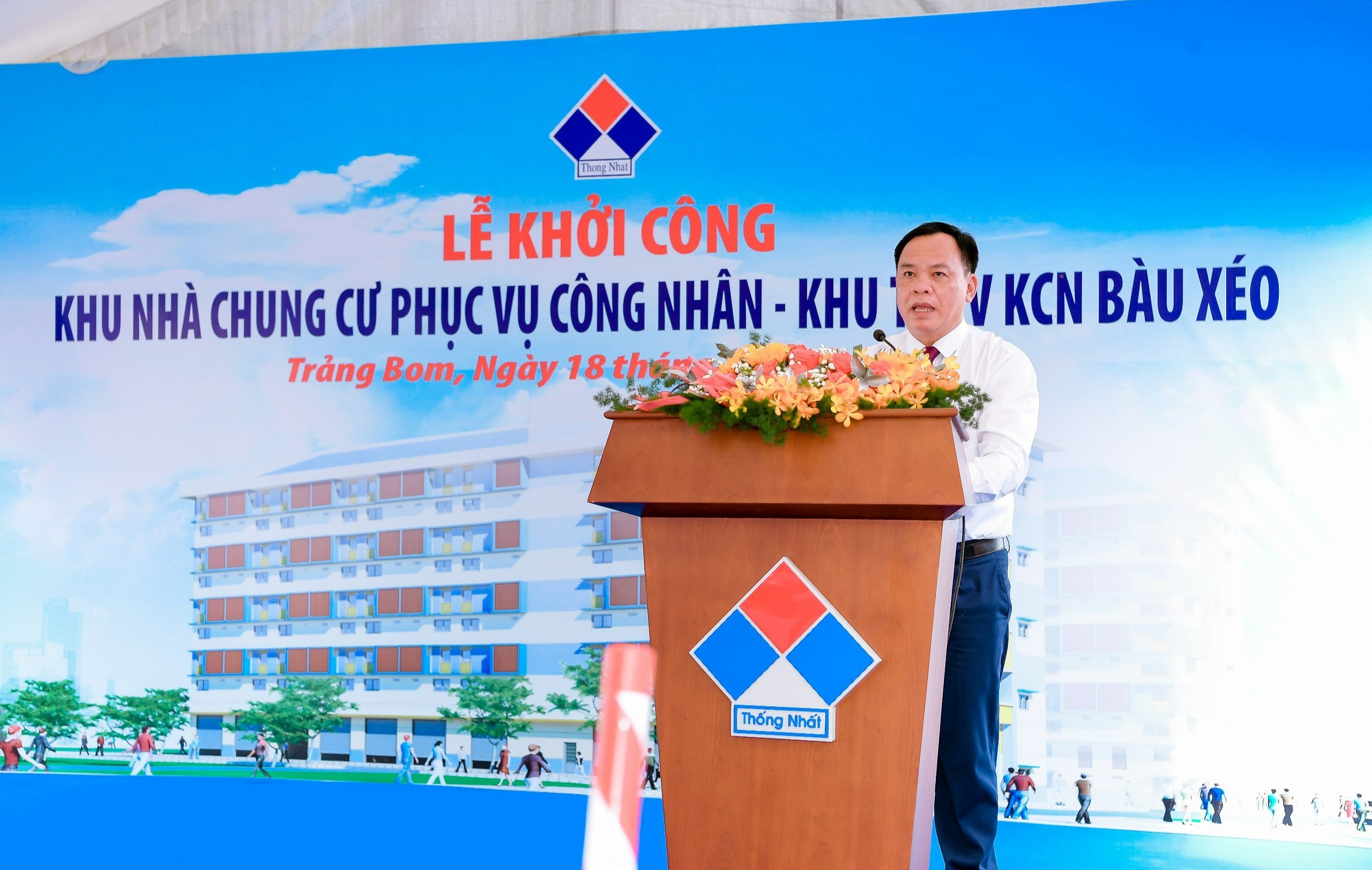 Phát biểu chỉ đạo tại buổi Lễ, đồng chí Võ Tấn Đức, UVTV, Quyền Chủ tịch UBND tỉnh đề nghị chủ đầu tư, đơn vị thi công, tư vấn thiết kế, tư vấn giám sát và các đơn vị liên quan tuân thủ các quy định về trình tự thủ tục đầu tư xây dựng, đảm bảo đúng tiến độ và chất lượng công trình; đảm bảo an toàn lao động và vệ sinh môi trường nhằm hạn chế đến mức thấp nhất ảnh hưởng đến các hoạt động sản xuất - kinh doanh cũng như môi trường sống của người dân và các doanh nghiệp trong khu vực. Đồng thời, yêu cầu Công ty tiếp tục hoàn chỉnh các thủ tục để sớm xây dựng hoàn thành các block còn lại; đề nghị Huyện ủy, Ủy ban nhân dân huyện Trảng Bom tiếp tục chỉ đạo sâu sát việc thực hiện các hồ sơ chủ trương đầu tư và triển khai các dự án khác trên địa bàn huyện để đạt mục tiêu đến năm 2025 trên địa bàn huyện Trảng Bom xây dựng 2.000 căn nhà ở xã hội theo mục tiêu của huyện đã đề ra tại Nghị quyết 09-NQ/HU ngày 20/2/2023 của Huyện ủy huyện Trảng Bom; góp phần hoàn thành mục tiêu đến năm 2025 trên địa bàn tỉnh xây dựng được 10.000 căn nhà ở xã hội theo mục tiêu Nghị quyết của Ban Chấp hành Đảng bộ tỉnh và Nghị quyết của Hội đồng nhân dân tỉnh.