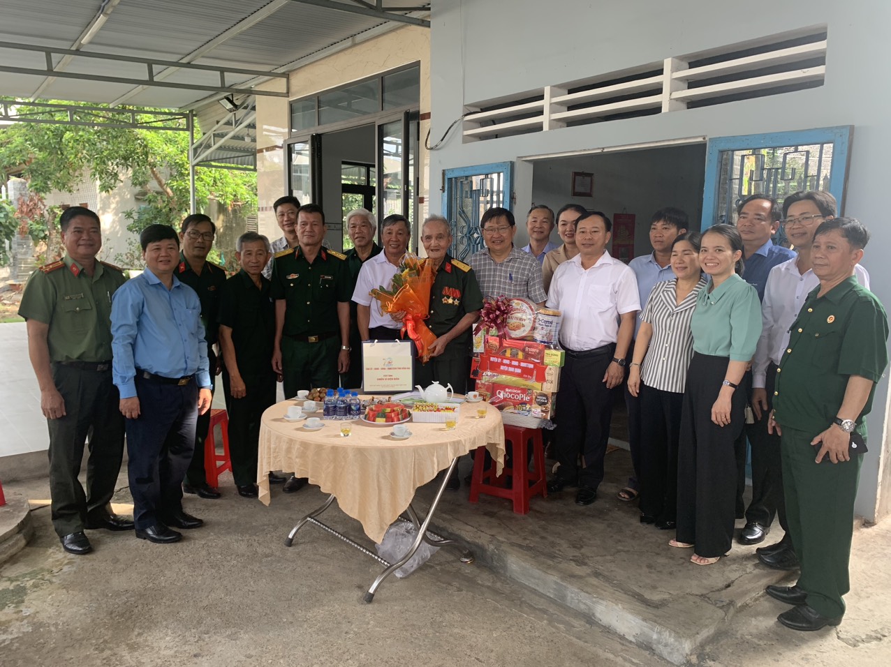 Đoàn đại biểu thăm và tặng quà Cụ Nguyễn Văn Thoại, sinh năm 1928, Khu phố Hiệp Quyết, thị trấn Định Quán, huyện Định Quán.