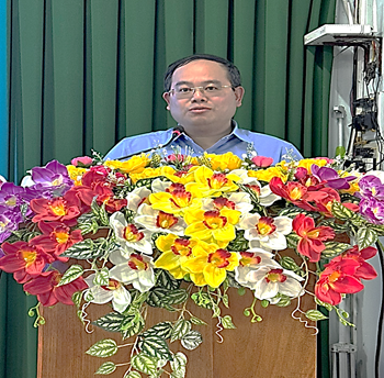 Đồng chí Quản Minh Cường - Phó Bí thư Tỉnh ủy, Trưởng Đoàn đại biểu Quốc hội tỉnh phát biểu tại buổi sinh hoạt Chi bộ