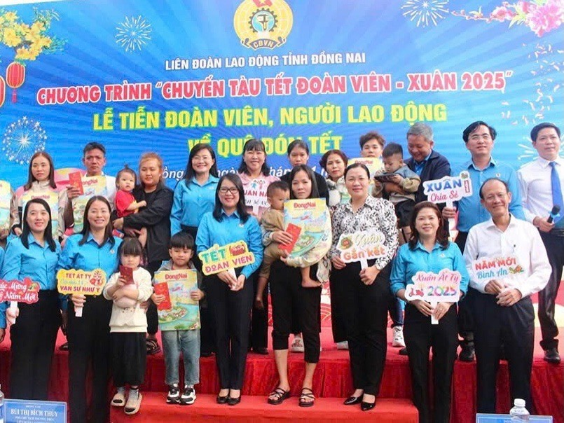 Trước đó, nhằm chăm lo tết cho đoàn viên, NLĐ trên địa bàn tỉnh nhân dịp Tết Ất Tỵ năm 2025 với phương châm tất cả đoàn viên, NLĐ đều có tết, quan tâm nhiều hơn các trường hợp khó khăn, bệnh hiểm nghèo, nhiều năm liền không có điều kiện về quê đón tết sum họp cùng gia đình, công đoàn các cấp đã sớm ban hành kế hoạch và tổ chức nhiều hoạt động chăm lo cho đoàn viên, NLĐ như: Tổ chức “Chợ tết Công đoàn năm 2025”, Chương trình “Tết Sum vầy - Xuân ơn Đảng”, Tổ chức “Chợ tết công đoàn năm 2025” với hình thức trực tuyến; Tổ chức Chương trình “Chuyến tàu tết đoàn viên - Xuân 2025” đưa đoàn viên, NLĐ về quê đón Tết 2025; tổ chức các hoạt động vui xuân đón tết, thăm, tặng quà, chúc tết đoàn viên, NLĐ năm 2025 … Kết quả trong chuỗi các hoạt động chăm lo Tết Ất Tỵ 2025, các tổ chức công đoàn đã hỗ trợ 79.688 phần quà gồm tiền mặt và quà cho đoàn viên, NLĐ có hoàn cảnh khó khăn, bị tai nạn lao động, suy giảm khả năng lao động, mắc bệnh hiểm nghèo … với tổng trị giá khoảng 82,37 tỷ đồng. Ngoài ra, công đoàn các cấp đã hỗ trợ 10.500 vé xe và 1.000 vé tàu đưa đoàn viên, NLĐ về quê đón Tết Ất Tỵ 2025.