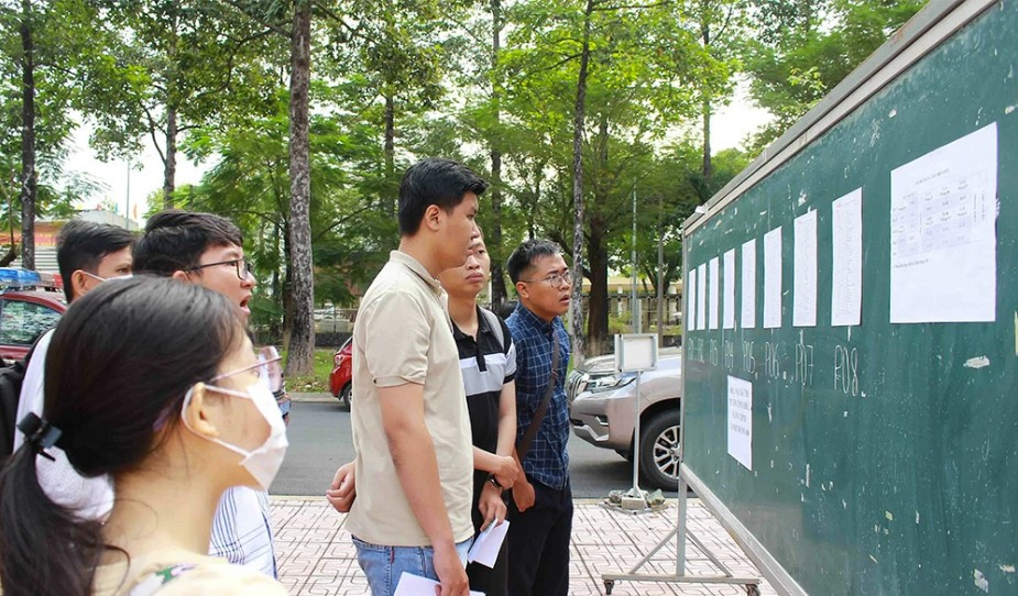 Các thí sinh rà soát thông tin trước khi bước vào Kỳ thi tuyển công chức tỉnh Đồng Nai năm 2023