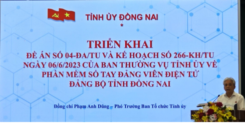 Nhằm đẩy mạnh công tác cải cách hành chính, ứng dụng công nghệ thông tin trong công tác đảng, góp phần nâng cao chất lượng, hiệu quả hoạt động của tổ chức cơ sở đảng và đội ngũ đảng viên, đáp ứng yêu cầu nhiệm vụ trong tình hình mới theo tinh thần Nghị quyết Đại hội Đảng bộ tỉnh lần thứ XI và Kế hoạch số 216-KH/TU, ngày 30/12/2022 của Ban Chấp hành Đảng bộ tỉnh về thực hiện Nghị quyết số 21-KH/TU, ngày 06/6/2023 “Tăng cường xây dựng, củng cố tổ chức cơ sở đảng và nâng cao chất lượng đội ngũ đảng viên trong giai đoạn hiện nay”. Trong năm 2023, Ban Thường vụ Tỉnh ủy ban hành Đề án số 04-ĐA/TU về xây dựng phần mềm Sổ tay đảng viên điện tử Đảng bộ tỉnh Đồng Nai. Đề án đã xác định rõ 03 mục tiêu chung và 05 mục tiêu cụ thể và được chia làm 02 giai đoạn thực hiện.