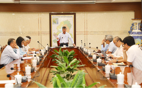 Phó bí thư thường trực Tỉnh ủy Hồ Thanh Sơn, Trưởng ban quản lý Đề án xây dựng phần mềm Sổ tay đảng viên điện tử Đảng bộ tỉnh Đồng Nai phát biểu kết luận cuộc họp