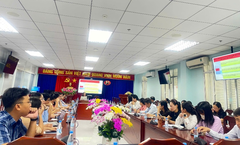 Tiến sĩ Cao Thị Huyền trao đổi, chia sẻ các nội dung về bình đẳng giới cho cán bộ, công chức của các sở, ban, ngành tỉnh