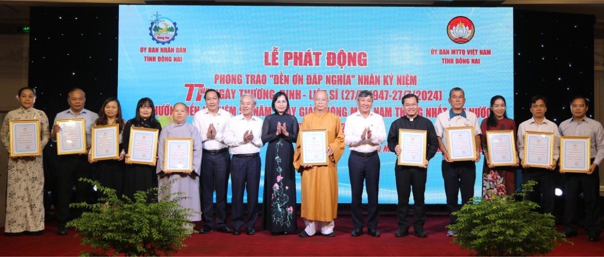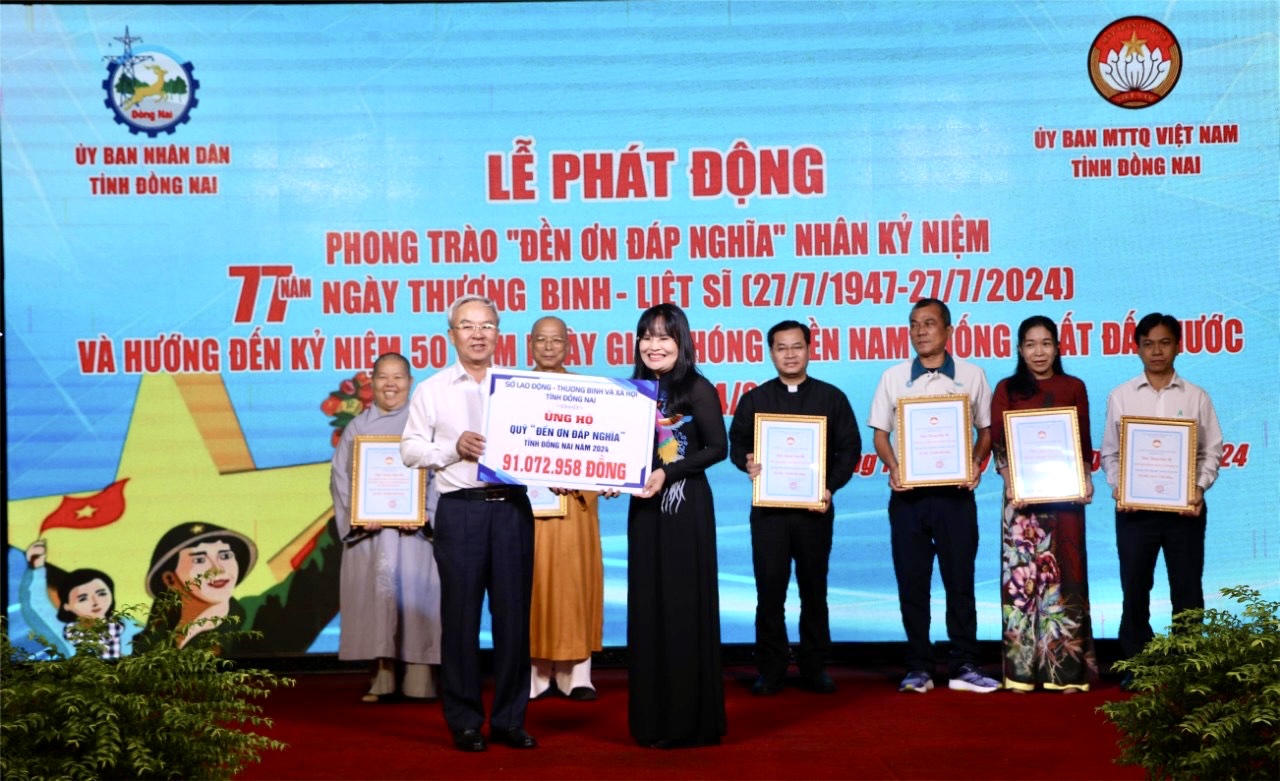 Tại buổi lễ đã tiếp nhận bảng ủng hộ Quỹ “Đền ơn đáp nghĩa” với tổng số tiền hơn 1,15 tỷ đồng, trước đó, UBND tỉnh và Ủy ban MTTQ Việt Nam tỉnh đã có Lời kêu gọi vận động toàn dân ủng hộ Quỹ “Đền ơn đáp nghĩa” tỉnh Đồng Nai năm 2024, riêng cán bộ, công chức, viên chức, người lao động, cán bộ, chiến sĩ lực lượng vũ trang ủng hộ Quỹ “Đền ơn đáp nghĩa” 01 ngày lương. Kết quả đến nay, đã tiếp nhận ủng hộ Quỹ “Đền ơn đáp nghĩa” tỉnh, với số tiền hơn 1,4 tỷ đồng.