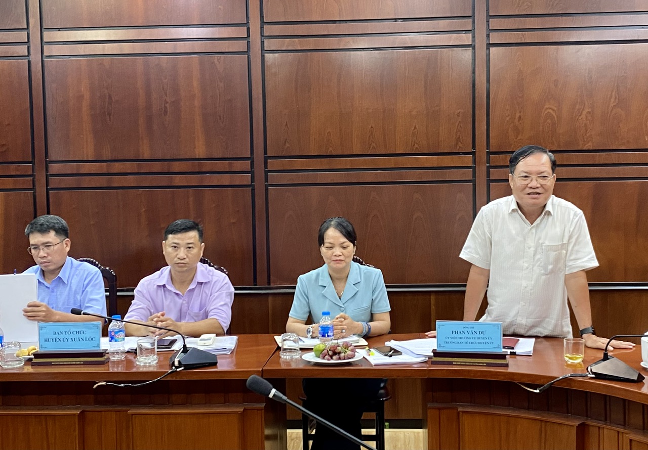 Đồng chí Phan Văn Dự – UVBTV Huyện ủy, Trưởng Ban Tổ chức Huyện ủy Xuân Lộc trao đổi các nội dung với Đoàn