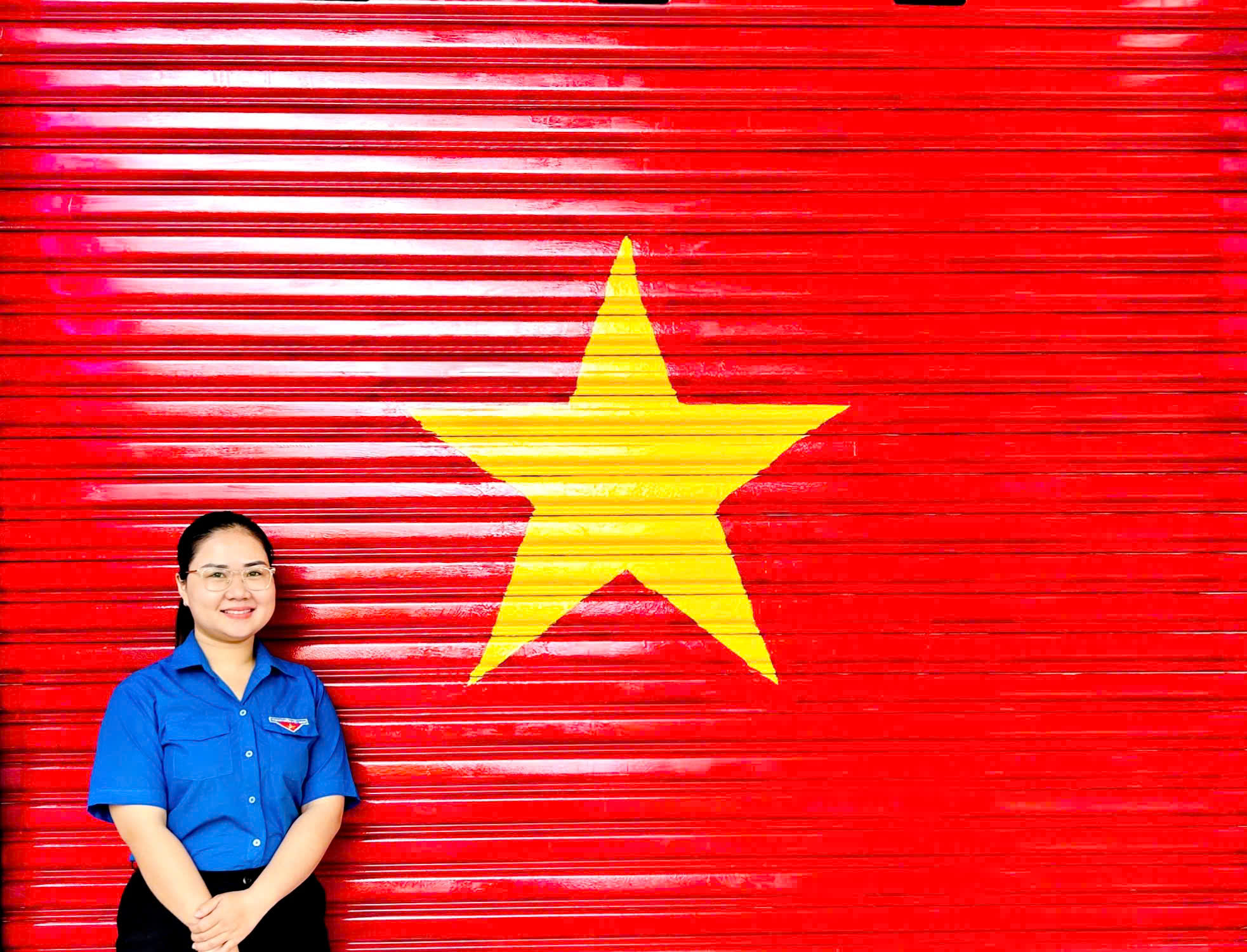Đoàn viên chụp hình tác phẩm theo trend vẽ cờ Tổ quốc