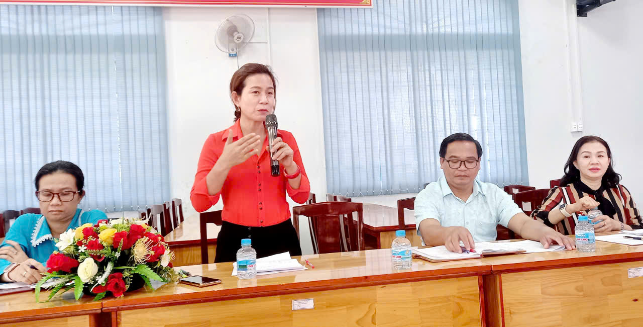 Lãnh đạo phòng Nông nghiệp và Phát triển nông thôn huyện Xuân Lộc báo cáo mô hình thực hiện Chương trình OCOP trên địa bàn huyện với Đoàn kiểm tra CVĐ 264 tỉnh