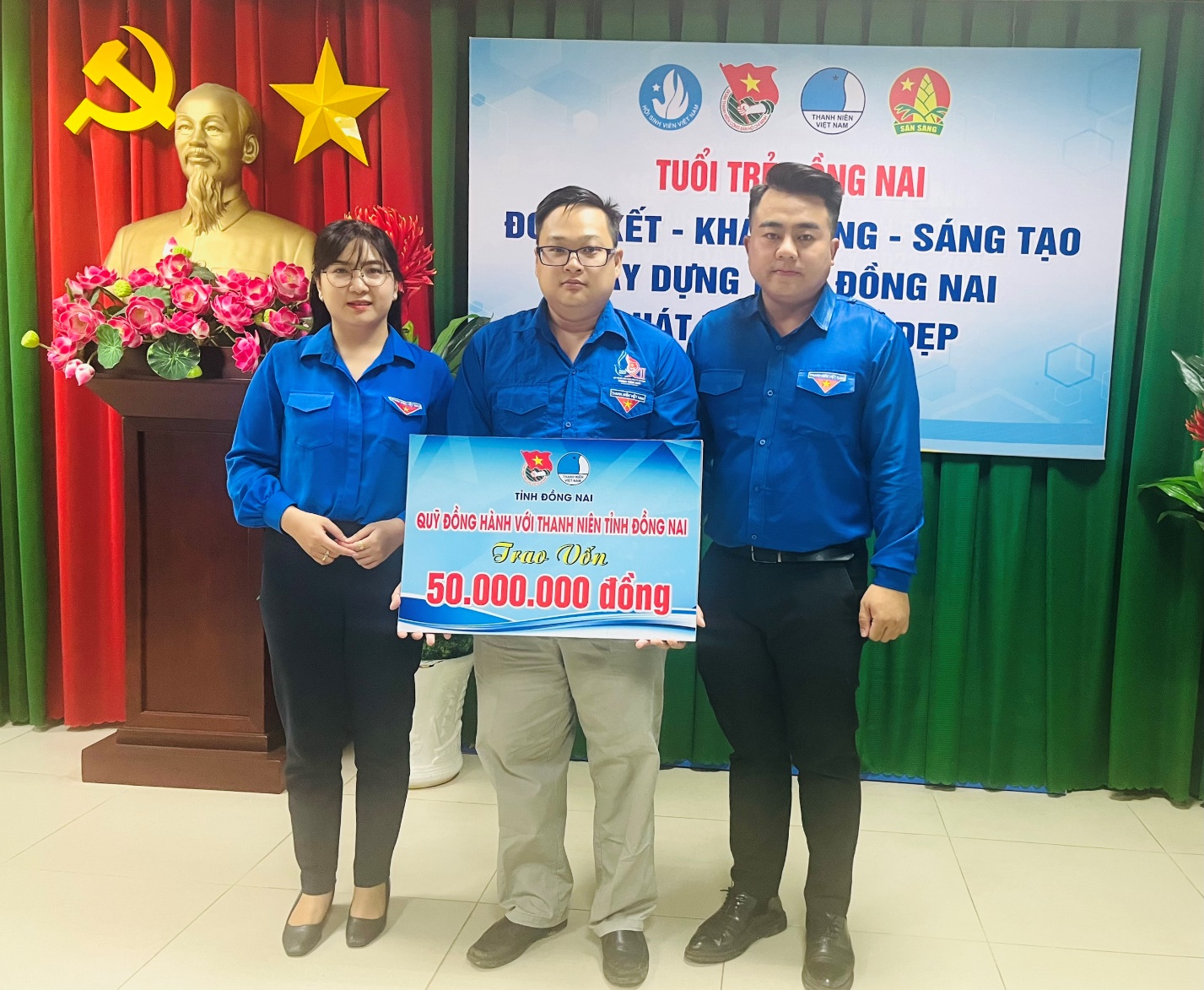 Nhằm hỗ trợ cán bộ Đoàn, đoàn viên, hội viên, thanh niên trong lĩnh vực sản xuất, kinh doanh, phát triển kinh tế, cuối tháng 7/2024, Ban Thường vụ Tỉnh đoàn - Ban Thư ký Hội LHTN Việt Nam tỉnh đã gặp gỡ và trao vốn vay cho 04 thanh niên chủ dự án khởi nghiệp là cán bộ Đoàn, đoàn viên, thanh niên tại thành phố Biên Hòa và huyện Định Quán với tổng số vốn vay là 200 triệu đồng, bao gồm:
