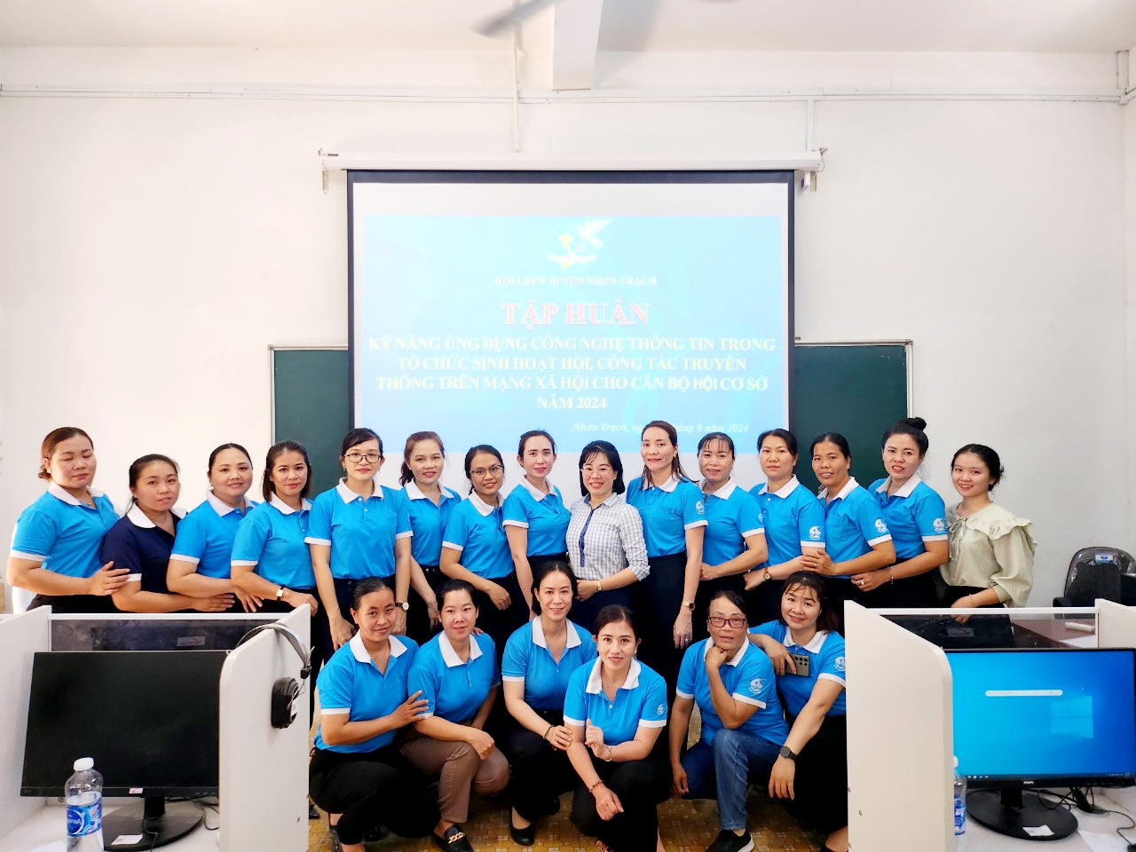 Sáng ngày 08/8/2024, Hội LHPN huyện Nhơn Trạch đã tổ chức lớp tập huấn kỹ năng ứng dụng CNTT trong tổ chức sinh hoạt Hội và công tác tuyên truyền trên KGM cho tất cả các chị là Chủ tịch và Phó Chủ tịch Hội LHPN các xã và thị trấn trên địa bàn huyện.