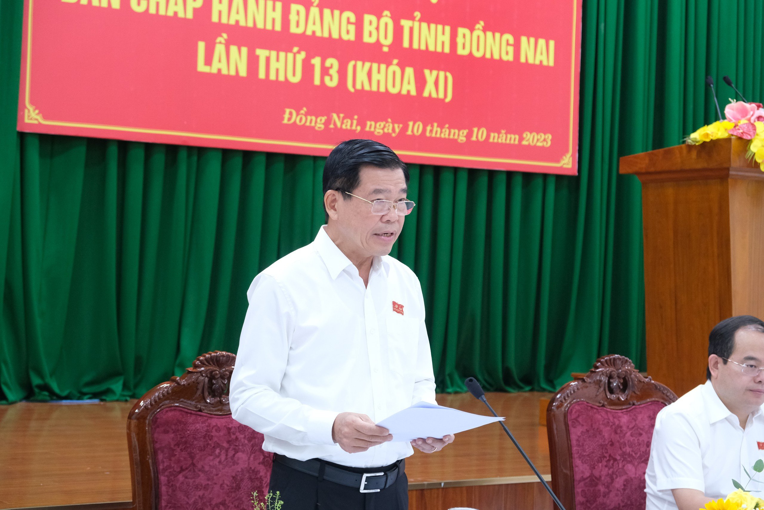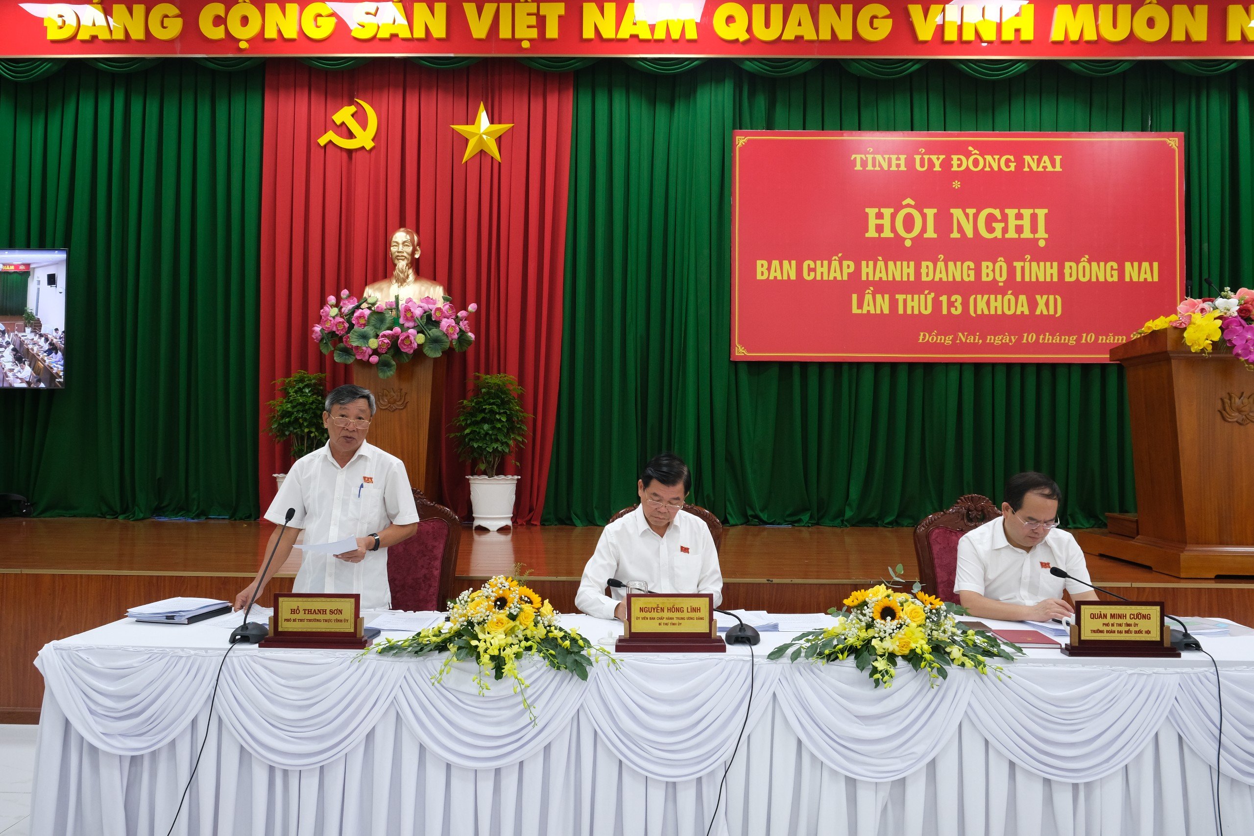 Sáng ngày 10/10/2023, Ban Thường vụ Tỉnh ủy triệu tập Hội nghị Ban Chấp hành Đảng bộ tỉnh lần thứ 13 để đánh giá kết quả thực hiện Nghị quyết số 08-NQ/TU ngày 08/12/2022 của Ban Chấp hành Đảng bộ tỉnh về chỉ tiêu, nhiệm vụ và giải pháp chủ yếu phát triển kinh tế - xã hội, quốc phòng - an ninh, xây dựng Đảng, đoàn thể trong 9 tháng năm 2023; Chương trình công tác quý IV/2023 và các nội dung khác thuộc thẩm quyền của Ban Chấp hành Đảng bộ tỉnh; chủ trì hội nghị gồm có đồng chí Nguyễn Hồng Lĩnh - Ủy viên Ban Chấp hành Trung ương Đảng, Bí thư Tỉnh ủy; đồng chí Hồ Thanh Sơn, Phó Bí thư Thường trực Tỉnh ủy; đồng chí Quản Minh Cường, Phó Bí thư Tỉnh ủy, Trưởng Đoàn đại biểu Quốc hội đơn vị tỉnh Đồng Nai; tham dự Hội nghị còn có các đồng chí đại biểu các ban đảng Trung ương và các đồng chí Ủy viên Ban Chấp hành Đảng bộ tỉnh khóa XI cùng đại diện là trưởng (phụ trách) các sở, ngành, đơn vị, lãnh đạo Văn phòng Tỉnh ủy, Văn phòng UBND, Văn phòng Đoàn ĐBQH và HĐND; Trưởng các ban Hội đồng nhân dân tỉnh; các đồng chí Ủy viên Ủy ban Kiểm tra Tỉnh ủy; Ban Giám hiệu và Trưởng các khoa Trường Chính trị, Tổng Biên tập Báo Đồng Nai, Giám đốc Đài Phát thanh và Truyền hình tỉnh; các phóng viên các báo, đài đến dự và đưa tin.