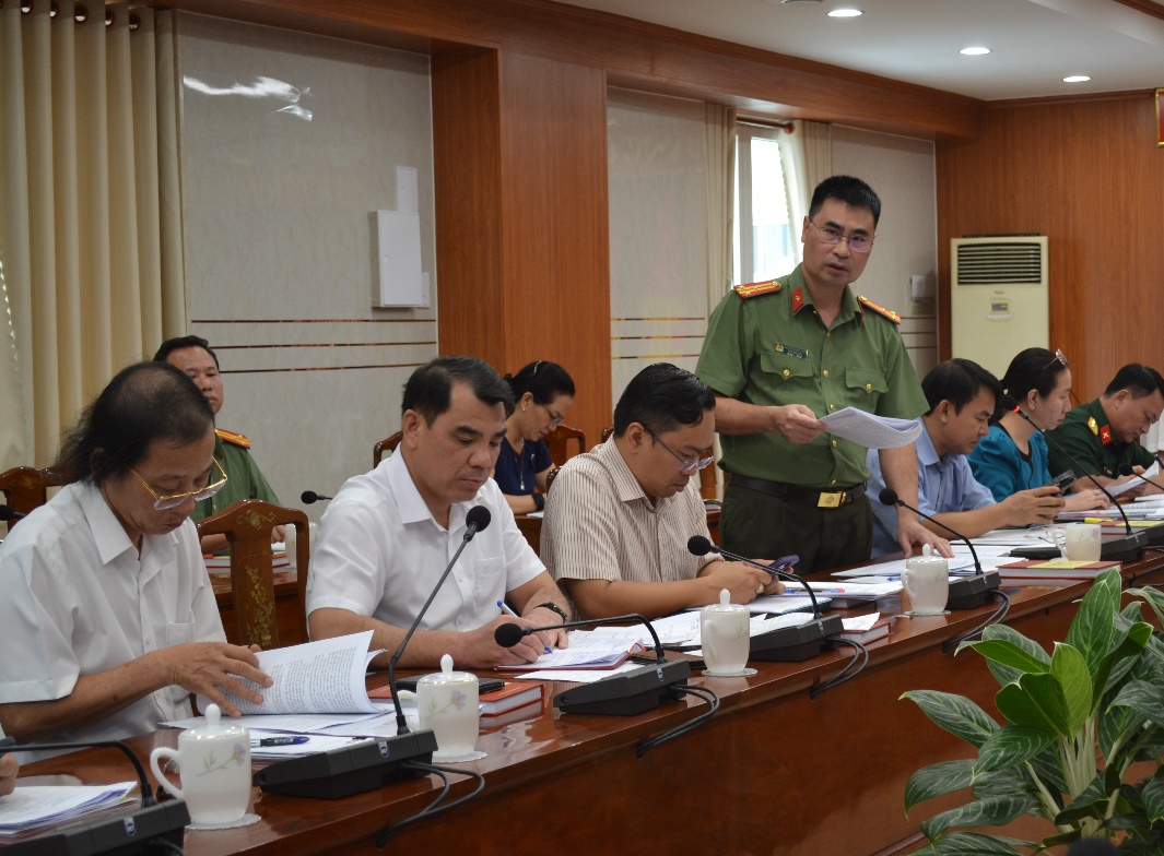 Đồng chí Nguyễn Mạnh Toàn, Phó Giám đốc Công an tỉnh phát biểu tại hội nghị