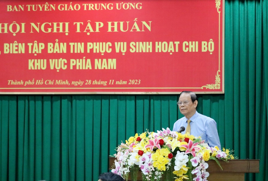 Sáng ngày 28/11/2023, tại Hội trường Cơ quan Thường trực Ban Tuyên giáo Trung ương khu vực miền Nam (Thành Phố Hồ Chí Minh), Ban Tuyên giáo Trung ương tổ chức Hội nghị tập huấn công tác biên tập bản tin phục vụ sinh hoạt chi bộ khu vực phía Nam do đồng chí Phan Xuân Thủy, Phó Trưởng Ban Tuyên giáo Trung ương chủ trì hội nghị.