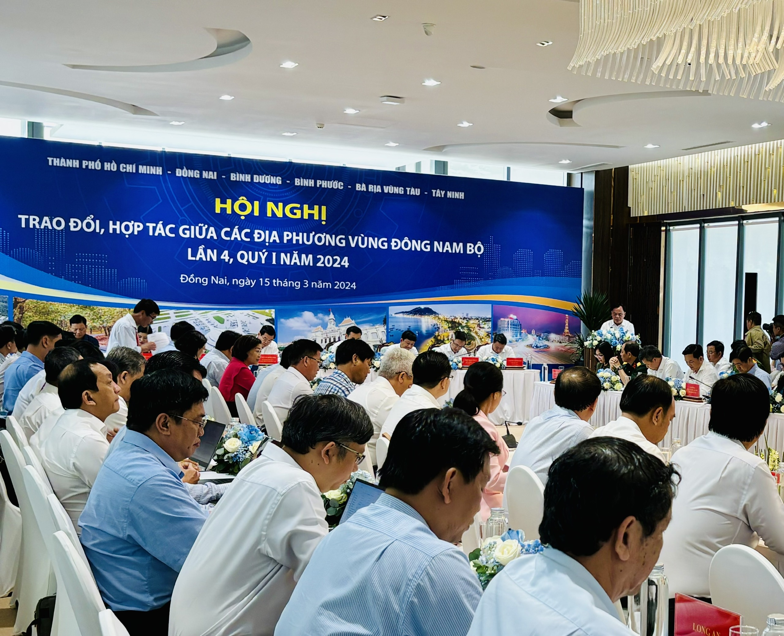Chiều 15-3, tại huyện Nhơn Trạch, tỉnh Đồng Nai đã đăng cai tổ chức Hội nghị trao đổi, hợp tác giữa các địa phương vùng Đông Nam bộ lần thứ 4, quý I-2024. Chủ trì Hội nghị gồm có các đồng chí: Nguyễn Hồng Lĩnh, Ủy viên Trung ương Đảng, Bí thư Tỉnh ủy Đồng Nai; Võ Tấn Đức, Ủy viên Ban TVTU, Quyền Chủ tịch UBND tỉnh cùng các đồng chí lãnh đạo UBND thành phố Hồ Chí Minh và UBND các tỉnh Bà Rịa – Vũng Tàu, Bình Dương, Bình Phước, Tây Ninh, Long An. Cùng tham dự Hội nghị còn có lãnh đạo của các Sở, ban, ngành và địa phương của các tỉnh Đông Nam Bộ.