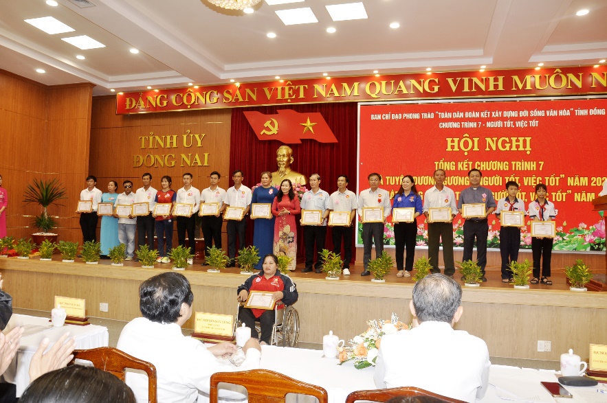 Năm 2023, tỉnh Đồng Nai tiếp tục thực hiện Nghị quyết Đại hội đại biểu Đảng bộ tỉnh lần thứ XI, nhiệm kỳ 2020-2025 và cũng là năm có nhiều cố gắng của cả hệ thống chính trị và sự chung sức, đồng lòng của Nhân dân trong tỉnh nhằm khôi phục, phát triển kinh tế - xã hội, đảm bảo công tác an sinh xã hội. Ngay từ đầu năm, Ban Chủ nhiệm Chương trình 7 - "Người tốt, việc tốt" của tỉnh đã chủ động xây dựng, ban hành kế hoạch để triển khai sâu rộng trong cán bộ, đảng viên và quần chúng nhân dân, tạo thành một phong trào có ảnh hưởng tích cực đến các lĩnh vực hoạt động của đời sống xã hội. Các cấp, các ngành của tỉnh đã phát hiện, biểu dương, khen thưởng 872 tập thể, cá nhân có thành tích tiêu biểu trên tất cả các lĩnh vực, trong học tập và làm theo tư tưởng, đạo đức, phong cách Hồ Chí Minh, trong đấu tranh phòng chống tội phạm, hoạt động nhân ái, từ thiện…; trong đó, các sở, ban, ngành, đoàn thể có 105 tập thể và 319 cá nhân; cấp huyện có 239 tập thể, 209 cá nhân được khen thưởng. Nổi bật là Chuyên án 1122S của Công an Đồng Nai đấu tranh triệt phá đường dây mua bán, tàng trữ trái phép vũ khí quân dụng thu giữ 18 khẩu súng, 1.056 viên đạn, 17 hộp tiếp đạn, cùng nhiều vỏ đạn AK, AR15; Phòng PC 02 Công an tỉnh điều tra, truy xét bắt giữ Lê Minh Long về tội cướp của, giết người tại tiệm Spa “Hương ROSA” phường Bình Đa; bắt giữ 02 tên cướp Ngân hàng Agribank ở xã Thạnh Phú (huyện Vĩnh Cửu) và Ngân hàng Vietcombank phường Tam Phước (thành phố Biên Hòa) thu giữ 01 khẩu súng rulo, thu hồi 700 triệu đồng; Đội chữa cháy và cứu hộ, cứu nạn Khu vực Nhơn Trạch cứu sống bé gái 05 tuổi rơi xuống cọc nhồi bê tông; 02 em Lê Nhã Trâm và Nguyễn Quốc Kỳ, học sinh lớp 5/2 Trường Tiểu học Phú Ngọc B, xã Phú ngọc, huyện Định Quán nhặt được túi xách có nữ trang và tiền trị giá khoảng 100 triệu đồng, trả lại cho người đánh rơi; ông Lê Văn Lâm, chủ “Mái ấm tình thương Phúc Lâm”, huyện Long Thành nhận nuôi 123 cháu mồ côi, vô gia cư; Đội phòng, chống tội phạm xã Sông Nhạn, huyện Cẩm Mỹ được Bí thư Tỉnh ủy gửi thư khen… Những nghĩa cử và việc làm nhân văn đó đã đóng góp tích cực cho sự bình yên của nhân dân, làm tốt công tác an sinh xã hội, đã tạo sự lan tỏa đến đời sống xã hội.