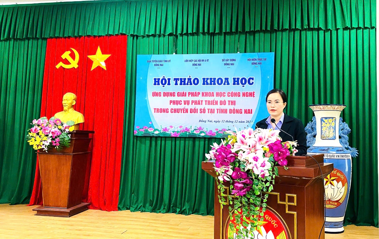 Sáng ngày 12/12/2024, Liên hiệp các Hội Khoa học và Kỹ thuật Đồng Nai phối hợp với Ban Tuyên giáo Tỉnh ủy và các đơn vị liên quan tổ chức Hội thảo khoa học “Ứng dụng các giải pháp KH-CN phục vụ phát triển đô thị trong chuyển đổi số tại tỉnh Đồng Nai”. Đến dự có đồng chí Nguyễn Thị Hồng Trang, TUV, Phó Trưởng ban Thường trực Ban Tuyên giáo Tỉnh ủy; lãnh đạo các sở, ban, ngành tỉnh; các Hiệp hội; các Hội thành viên, các trường đại học; các nhà nghiên cứu khoa học trong và ngoài tỉnh; các tổ chức, cá nhân có nhu cầu ứng dụng thực tế theo lĩnh vực đề xuất.