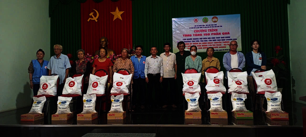 Thiết thực chào mừng kỷ niệm 94 năm Ngày truyền thống công tác Dân vận của Đảng (15/10/1930-15/10/2024); 25 năm Ngày Dân vận cả nước (15/10/1999-15/10/2024) và Tháng cao điểm vì người nghèo. Với nghĩa cử cao đẹp, tấm lòng nhân ái “Thương người như thể thương thân”; ngày 09/10/2024, Hội Từ thiện tỉnh Đồng Nai chủ trì, phối hợp Hội Cựu Thanh niên xung (CTNXP) tỉnh, Ủy ban MTTQ Việt Nam thành phố Biên Hòa, Đảng ủy - UBND các phường: Tân Tiến, Tân Hiệp, Tân Mai, Tam Hiệp do ông Nguyễn Phú Cường - Chủ tịch Hội Từ thiện tỉnh cùng các mạnh thường quân, nhóm thiện nguyện thành phố Biên Hòa tổ chức trao các phần quà yêu thương tại thành phố Biên Hòa. Dự và trao quà với Đoàn, về phía Hội CTNXP tỉnh có ông Nguyễn Minh Mẫn - Phó Chủ tịch Hội CTNXP tỉnh, ông Nho Văn Lịch - Thành ủy viên, Phó Chủ tịch Ủy ban MTTQ Việt Nam thành phố Biên tổ chức trao tặng những phần quà yêu thương cho các hộ gia đình nghèo, khó khăn, hội viên Hội CTNXP trên địa bàn thành phố Biên Hòa cụ thể.