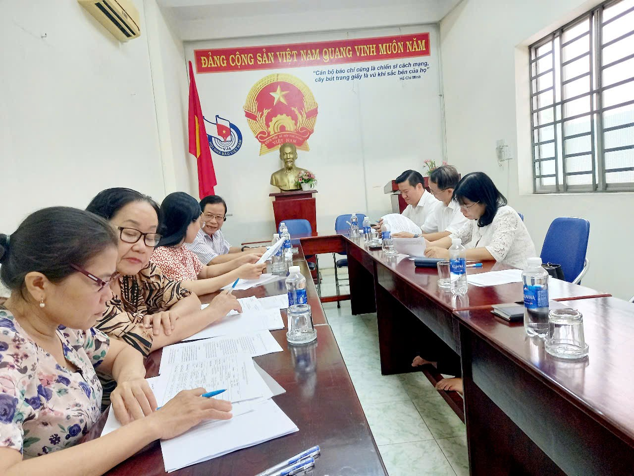 Các thành viên Hội đồng xét chọn tuyên dương Người làm báo tiêu biểu tỉnh Đồng Nai họp ngày 09/6/2025