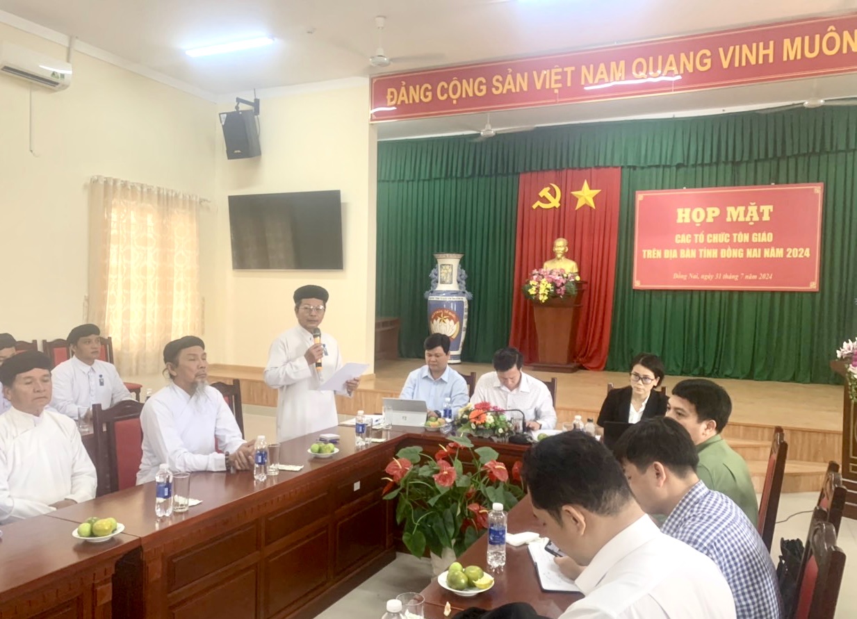 Tại buổi họp mặt, đại diện Ban Tôn giáo - Sở Nội vụ tỉnh đã thông tin khái quát về tình hình phát triển kinh tế, văn hóa - xã hội của tỉnh Đồng Nai và tình hình tín ngưỡng, tôn giáo trên địa bàn tỉnh 6 tháng đầu năm 2024. Đồng thời, thông tin kết quả phối hợp giải quyết các kiến nghị trong buổi họp mặt năm 2023.