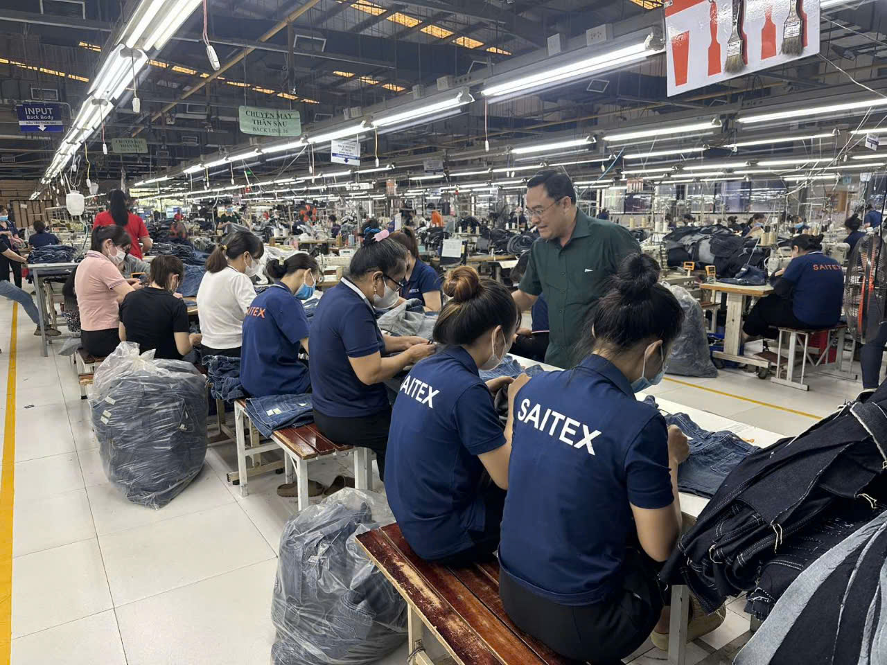 Đoàn công tác đã nghe 02 Công ty báo cáo một số nội dung liên quan đến việc thực hiện PLLĐ tại DN: Công ty TNHH Saitex International Đồng Nai (Việt Nam) chuyên sản xuất may mặc các sản phẩm bằng vải Jean, có tổng số 3.176 lao động người Việt Nam (số người lao động (NLĐ) đã được ký kết hợp đồng lao động là 3.111 người, số NLĐ đang trong thời gian thử việc là 65 người, số NLĐ tự thôi việc trong năm 2024 là 1.761 người và sa thải 01 lao động) và số lao động người nước ngoài có Giấy phép lao động là 21 người. Công ty thực hiện chế độ tiền lương theo thang bảng lương, áp dụng hình thức trả lương theo thời gian và lương sản phẩm với mức lương tối thiểu là 5.121.000 đồng. Ngoài ra, Công ty còn chi trả các khoản phụ cấp, trợ cấp đang thực hiện tại DN như: Tiền hỗ trợ nhà ở, tiền hỗ trợ xăng xe, tiền hỗ trợ đi lại, tiền hỗ trợ hoàn thành vượt năng suất lao động, tiền thưởng năng suất. Bên cạnh đó, Công ty còn thực hiện chế độ tiền thưởng năng suất hàng tháng, thưởng hàng năm theo quy chế lương thưởng ban hành đầu năm; mức thưởng Tết Nguyên đán Ất Tỵ - 2025 là 1,0 tháng lương cơ bản và Công đoàn có quà Tết cho NLĐ. Trong năm 2024, Công ty thực hiện đóng đầy đủ chế độ bảo hiểm xã hội, bảo hiểm Y tế, bảo hiểm thất nghiệp với tổng số tiền phải nộp là hơn 81,7 tỷ đồng và kinh phí Công đoàn là gần 5,3 tỷ đồng cho tổng số lao động thuộc đối tượng tham gia bảo hiểm xã hội bắt buộc là 3.065/3.176 người (3.044 lao động người Việt Nam và 21 lao động người nước ngoài), còn 111 NLĐ đang thử việc, không thuộc đối tượng tham gia bảo hiểm.