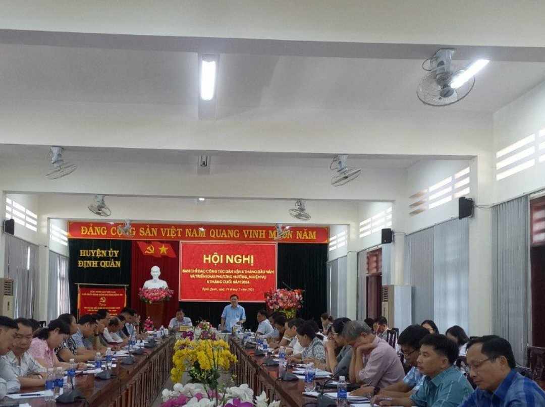 Ngày 30/7/2024, Huyện ủy Định Quán tổ chức hội nghị Ban Chỉ đạo CTDV 6 tháng đầu năm, nhiệm vụ trọng tâm 6 tháng cuối năm 2024. Chủ trì hội nghị do đồng chí Trần Bá Đạt - TUV, Bí thư Huyện ủy; tham dự hội nghị có các đồng chí: Trần Hữu Hạnh - Phó Bí thư Thường trực Huyện ủy, Chủ tịch HĐND huyện; Trần Nam Biên - Phó Bí thư Huyện ủy, Chủ tịch UBND huyện và các thành viên Ban Chỉ đạo CTDV huyện Định Quán.