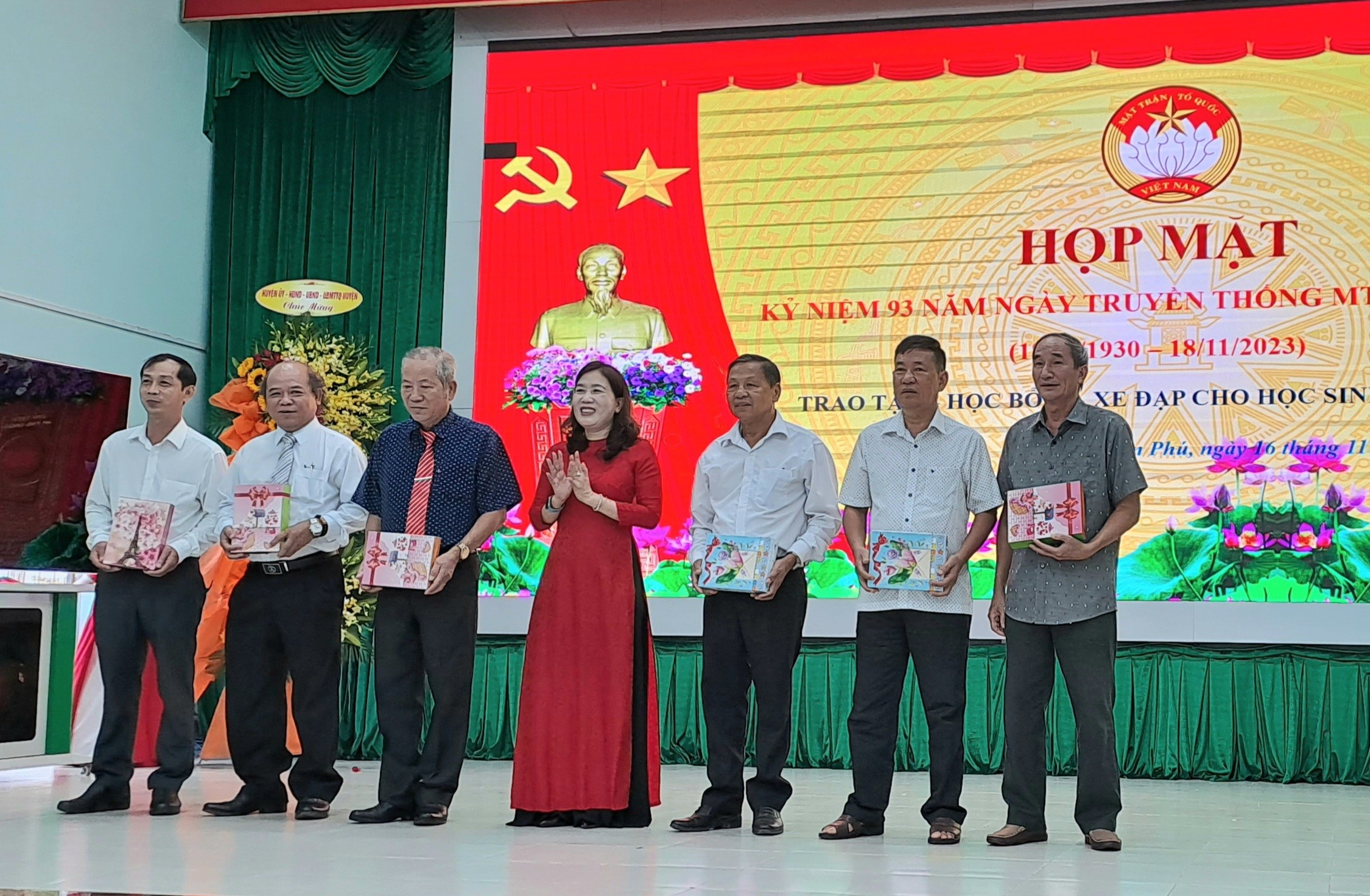 Sáng ngày 16/11, tại Hội trường Trung tâm Chính trị huyện, Ủy ban Mặt trận Tổ quốc (MTTQ) Việt Nam huyện Tân Phú long trọng tổ chức Họp mặt kỷ niệm 93 năm Ngày truyền thống Mặt trận Tổ quốc Việt Nam (18/11/1930-18/11/2023) và và trao tặng học bổng, xe đạp cho học sinh vượt khó. Tham dự có đồng chí Nguyễn Trung Thành - TUV, Bí thư Huyện ủy; đồng chí Phạm Thị Lý - UVTV Huyện ủy, Chủ tịch Ủy ban MTTQ Việt Nam huyện Tân Phú; các đồng chí nguyên lãnh đạo, cán bộ MTTQ Việt Nam huyện qua các thời kỳ và đông đảo cán bộ làm công tác MTTQ các xã, thị trấn trong toàn huyện.