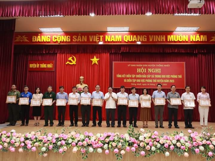 Cuộc diễn tập KVPT huyện Thống Nhất năm 2023 đã hoàn thành xuất sắc nhiệm vụ, bảo đảm an toàn tuyệt đối về người, vũ khí trang bị. Trong hội nghị tổng kết, UBND huyện đã trao giấy khen cho 45 tập thể, 105 cá nhân có thành tích xuất sắc trong công tác diễn tập KVPT năm 2023.