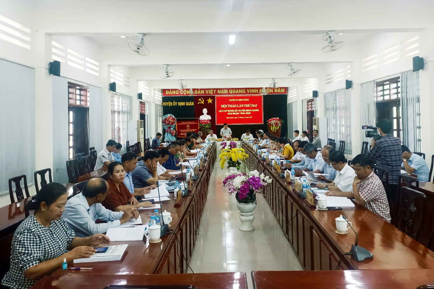 Sáng ngày 27/12/2023, tại phòng họp Ban Chấp hành Đảng bộ huyện, Thường trực Huyện ủy Định Quán tổ chức Hội thảo góp ý lần thứ hai cho cuốn “Lịch sử Đảng bộ huyện Định Quán, 1945-2020”. Tham dự Hội thảo, có các đồng chí: Trần Bá Đạt - TUV, Bí thư Huyện ủy, Chủ trì Hội thảo; Trần Hữu Hạnh - Phó Bí thư Thường trực Huyện ủy, Chủ tịch HĐND huyện - đồng Chủ trì Hội thảo; Trần Nam Biên - Phó Bí thư Huyện ủy, Chủ tịch UBND huyện - đồng Chủ trì Hội thảo; Trần Quang Toại - Chủ tịch Hội Khoa học lịch sử tỉnh; các đồng chí là Ủy viên Ban Chấp hành Đảng bộ huyện (khóa XIII), Ban Chỉ đạo, Ban Biên soạn, Tổ thư ký; lãnh đạo các Ban đảng, Văn phòng Huyện ủy, Hội Cựu Chiến binh, Liên đoàn lao động huyện và các cơ quan chuyên môn trực thuộc UBND huyện.