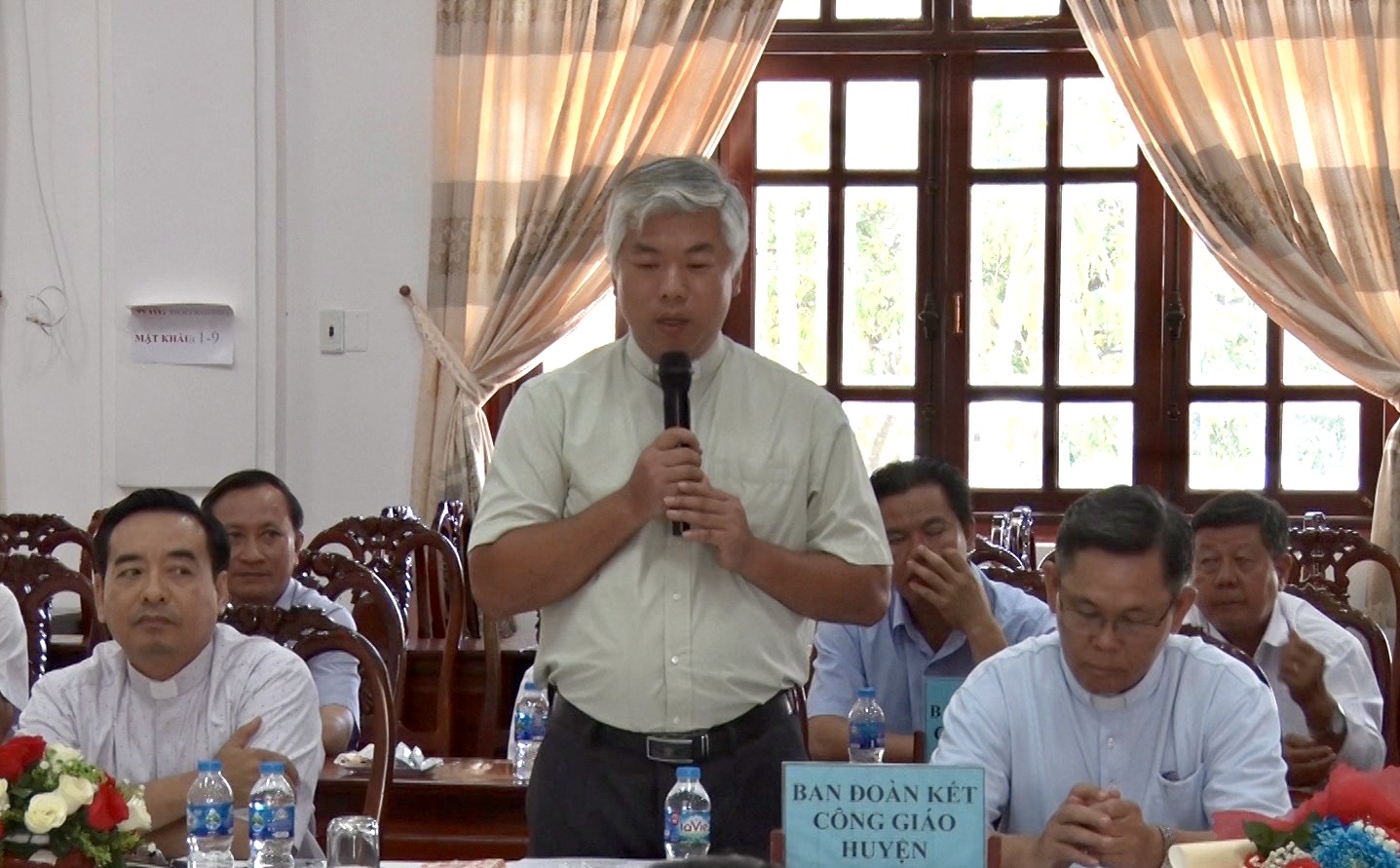 Linh mục Phạm Quang Vinh - Chánh xử Giáo xứ Hiếu Liêm phát biểu tại buổi họp mặt