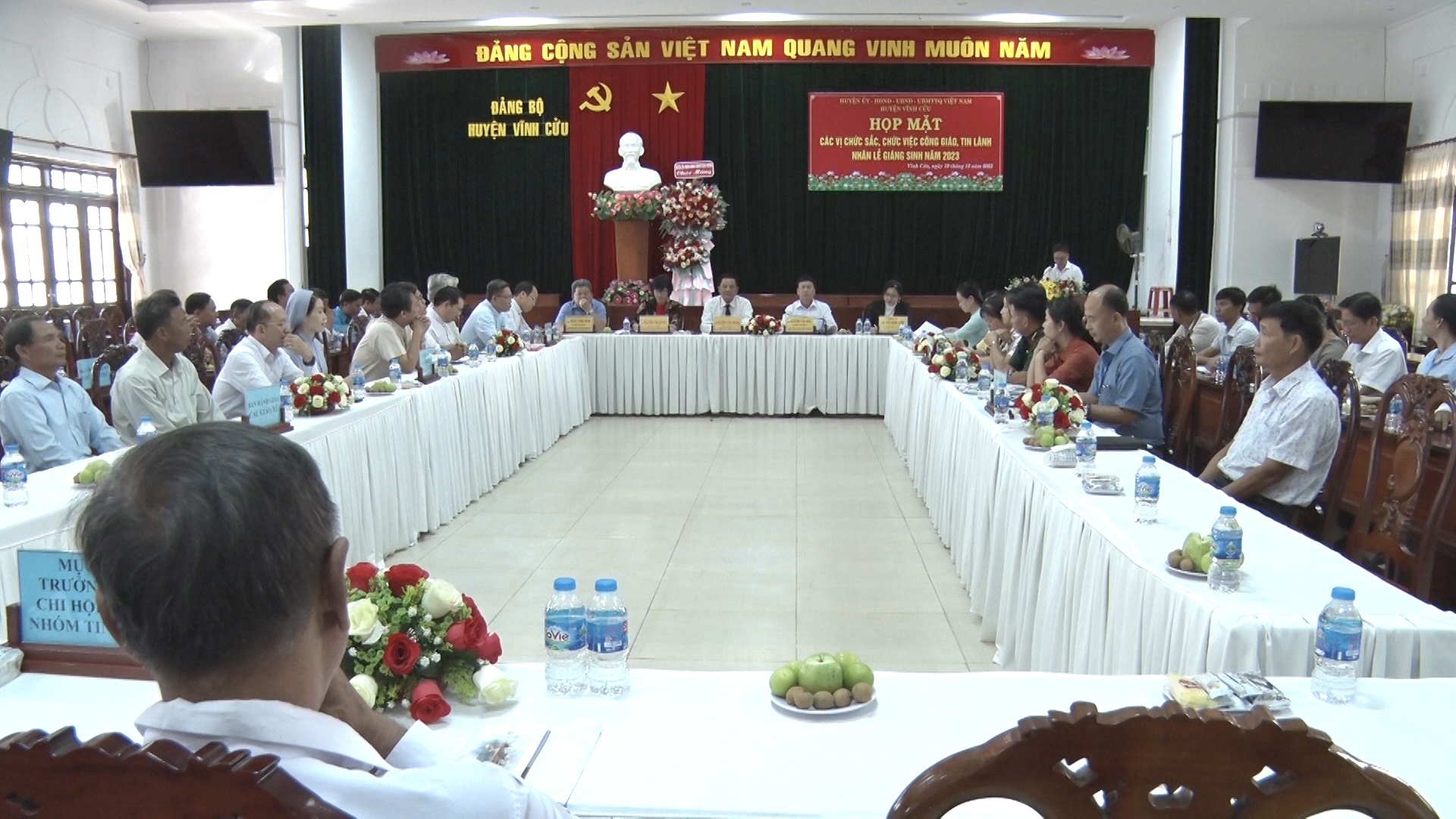 Sáng ngày 19/12, Huyện ủy - HĐND - UBND - UBMTTQ Việt Nam huyện Vĩnh Cửu tổ chức buổi họp mặt các vị chức sắc, chức việc đạo Công giáo, Tin lành trên địa bàn huyện nhân dịp Lễ Giáng sinh năm 2023.